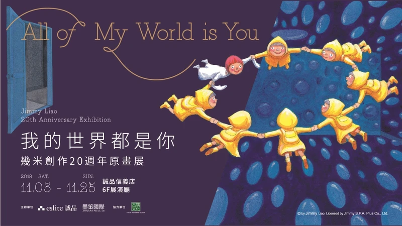 (誠品攜手幾米首次於台灣、香港、大陸舉辦跨地聯展《我的世界都是你-幾米創作20週年原畫展》。)