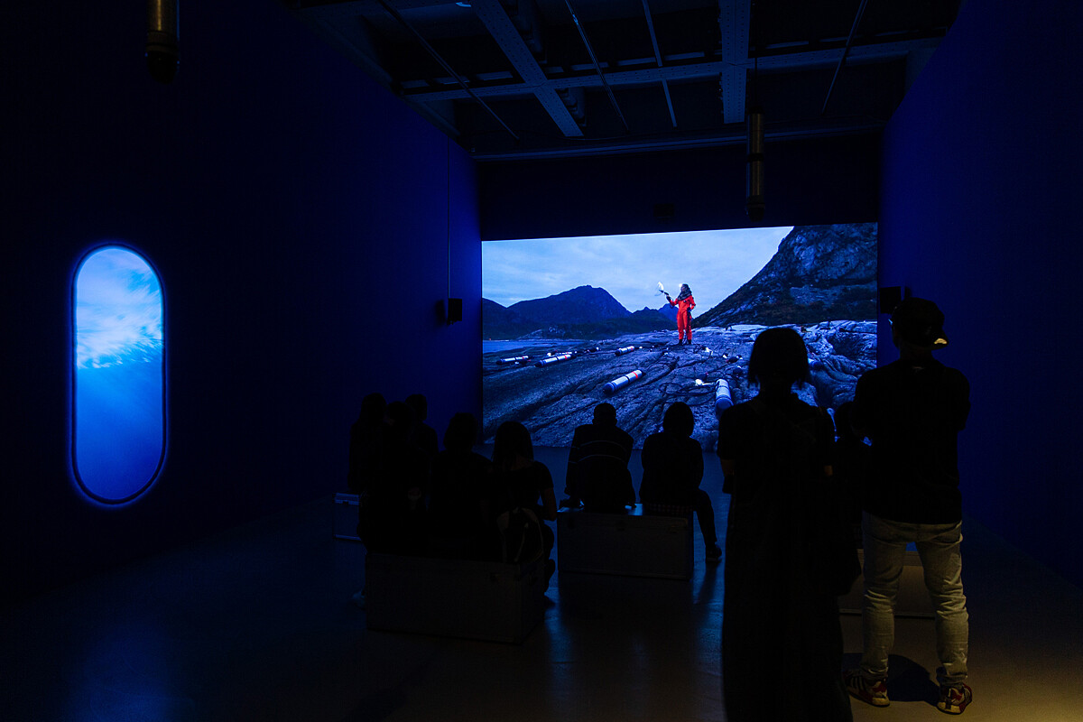 (烏蘇拉.畢曼 《聲海》,2018錄像裝置,彩色,有聲,片長 18 分鐘 © 參展人、臺北市立美術館。)