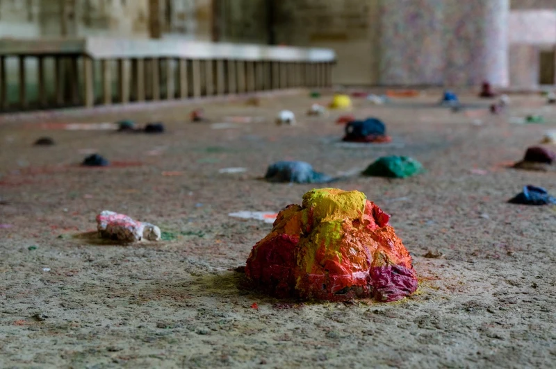CMSI團體成員不分階級地走入各種日常生活場景,以各式藝術語彙的方法轉化,挑戰並重塑不同場域的空間政治,同時也透過藝術行動以積極、多樣化的姿態呈現,游擊式地進入都市空間的各種日常中發聲,凝結並發揮社會影響力。這顯現在 Mit Jai Inn的創作中則轉化為嚴謹而重複的勞動循環,將繪畫行為經過不斷反覆地混合、覆蓋、重複塗抹色料油彩的過程極大化,在企圖呈現其所思所見的同時,身體感所摹寫的時空軌跡,彷彿將「創作」與「觀看」兩者時空事件連結成疊加態,勾勒出獨特而細膩的閱讀視角。