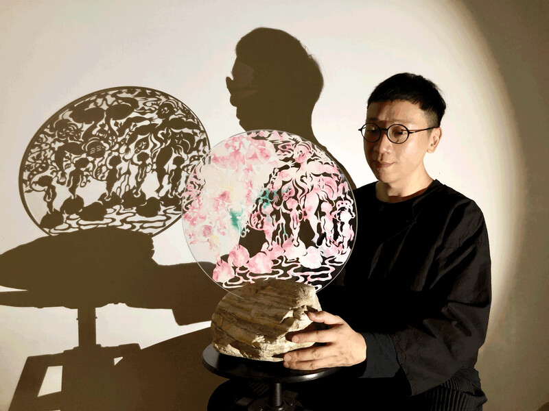 這次,他將在尊彩藝術中心二度舉辦《篝火合歌》個展,是他歷年來透過剪紙文化,關注民間藝術歷史,進而實驗出具個人特質的演繹。本展集結了他近兩年(2017~2018)的部份創作,將其整理成四個子題《篝火》《字典》《落腳》《走河》系列作品,展現不同的概念與藝術實踐方式。