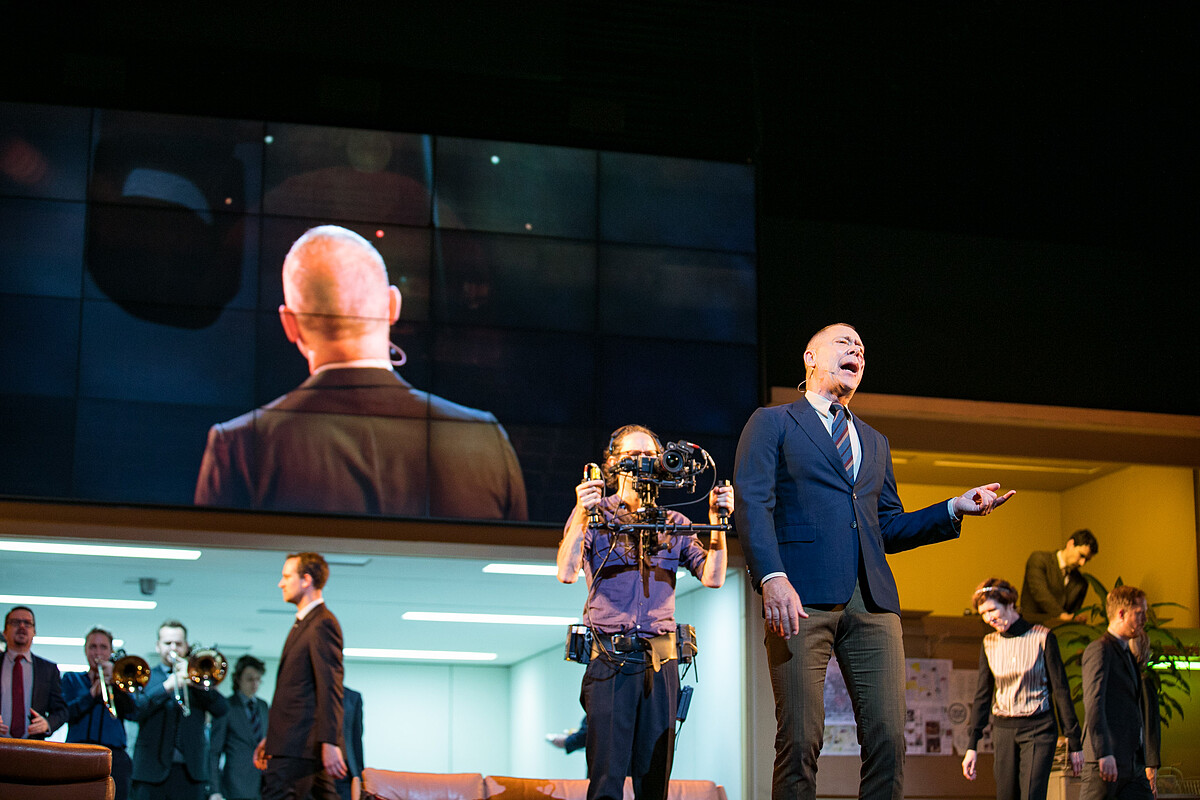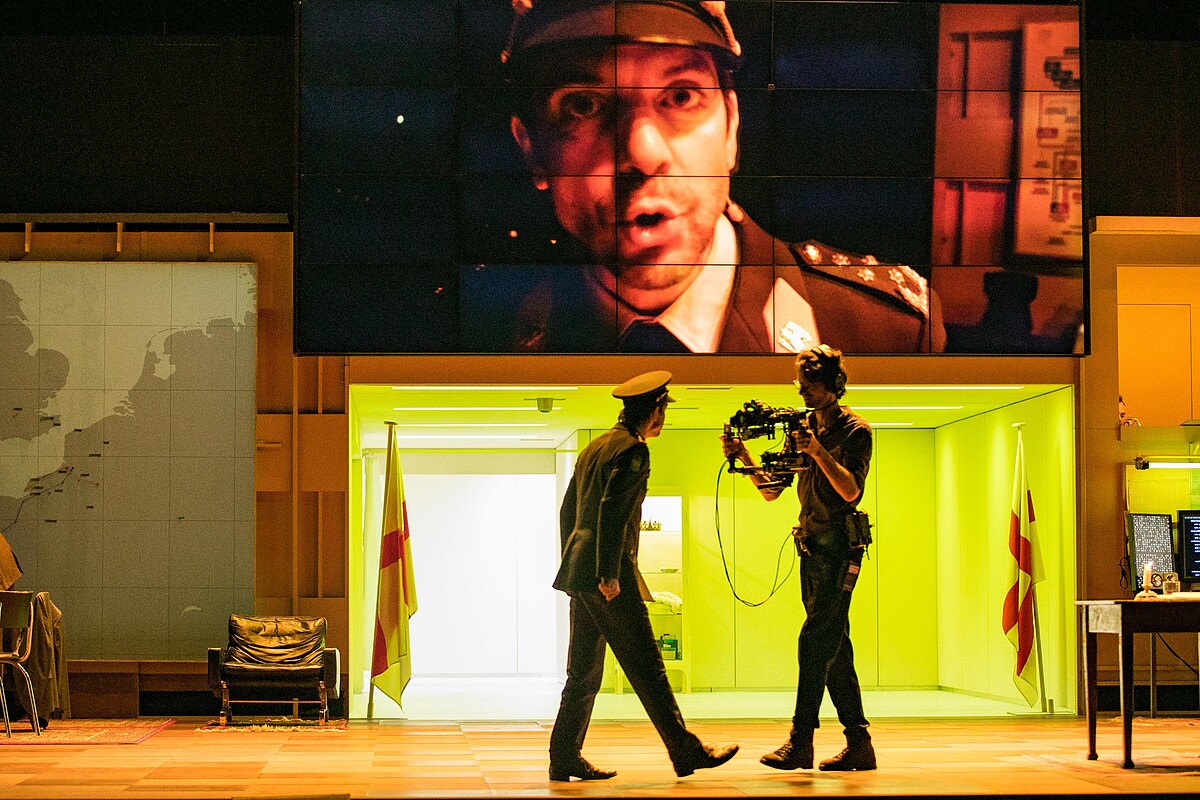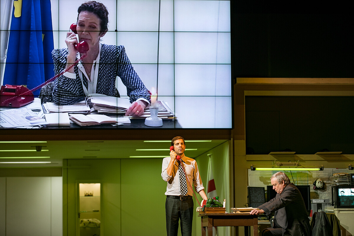 導演凡.霍夫發揮最擅長的多媒體手法,讓舞台上的銀幕影像,不管是特寫鏡頭、全景攝影、跟拍畫面、預錄影像,或是放映出連通走廊的一舉一動,讓銀幕與台上的表演互相連結觀眾也像是隨時監視執政者的一舉一動,體現他們心中的思量盤算與無助掙扎。