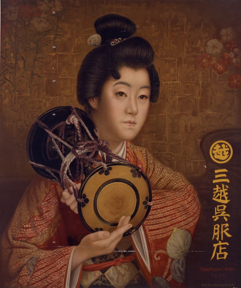 (三越吳服店,紫白檜。)