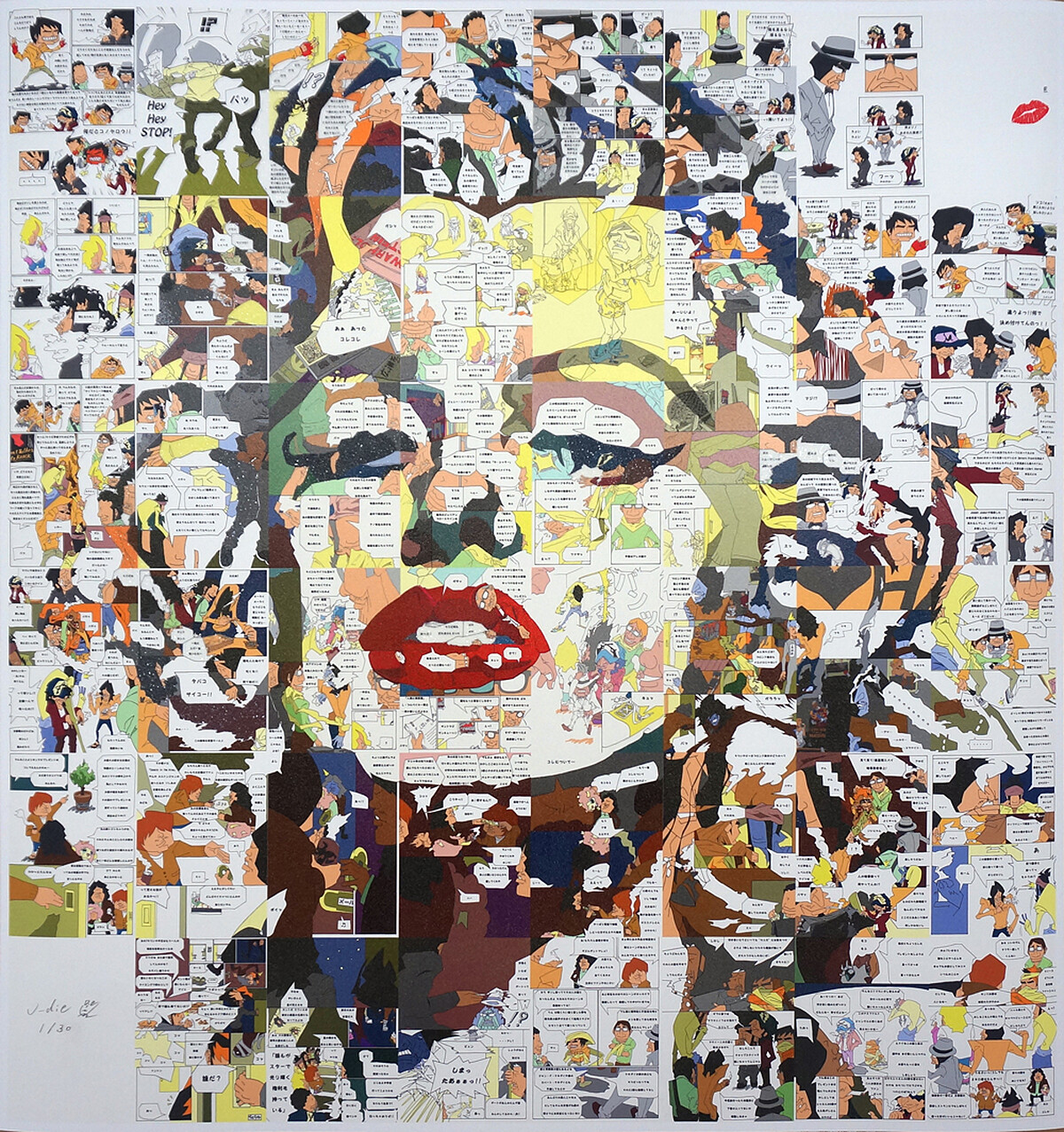 (Yoshiaki-Inoue-Gallery_U-die_Are-nitsuite-no-mudabanashi-#3_silk-screen-medium-on-pigmented-ink,-crashed-glass-on-paper-edition30_100×94.3cm_2018_Japan。)