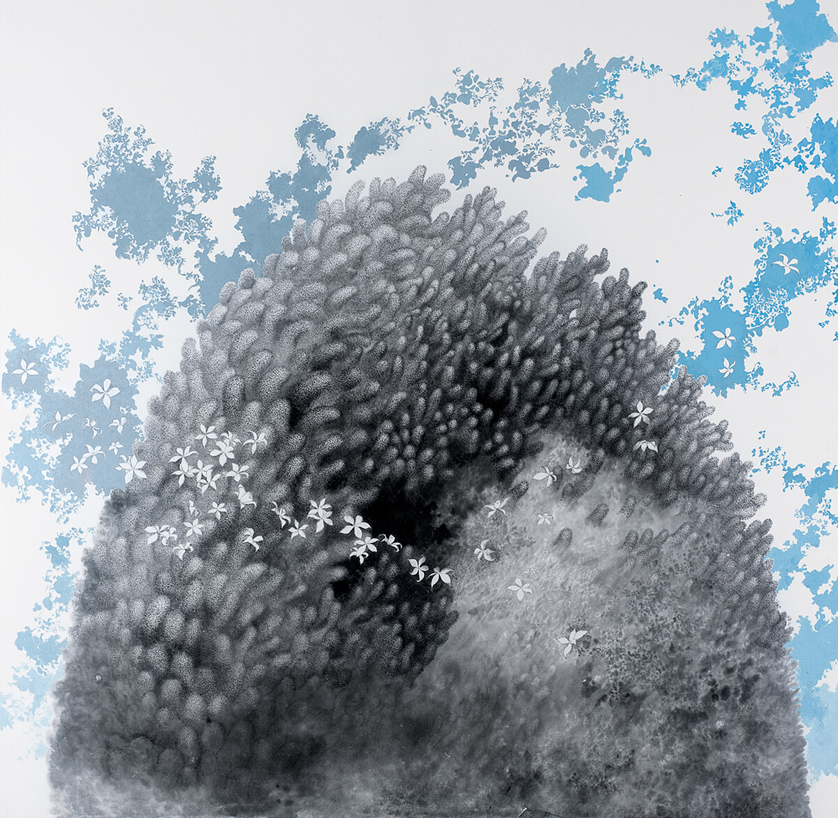 (黎藝術館_駱志豪LO-Zhi-Hao_1987_Taiwan_渡時花flower-of-time_97.8x97.2_Ink-on-paper_2018。)