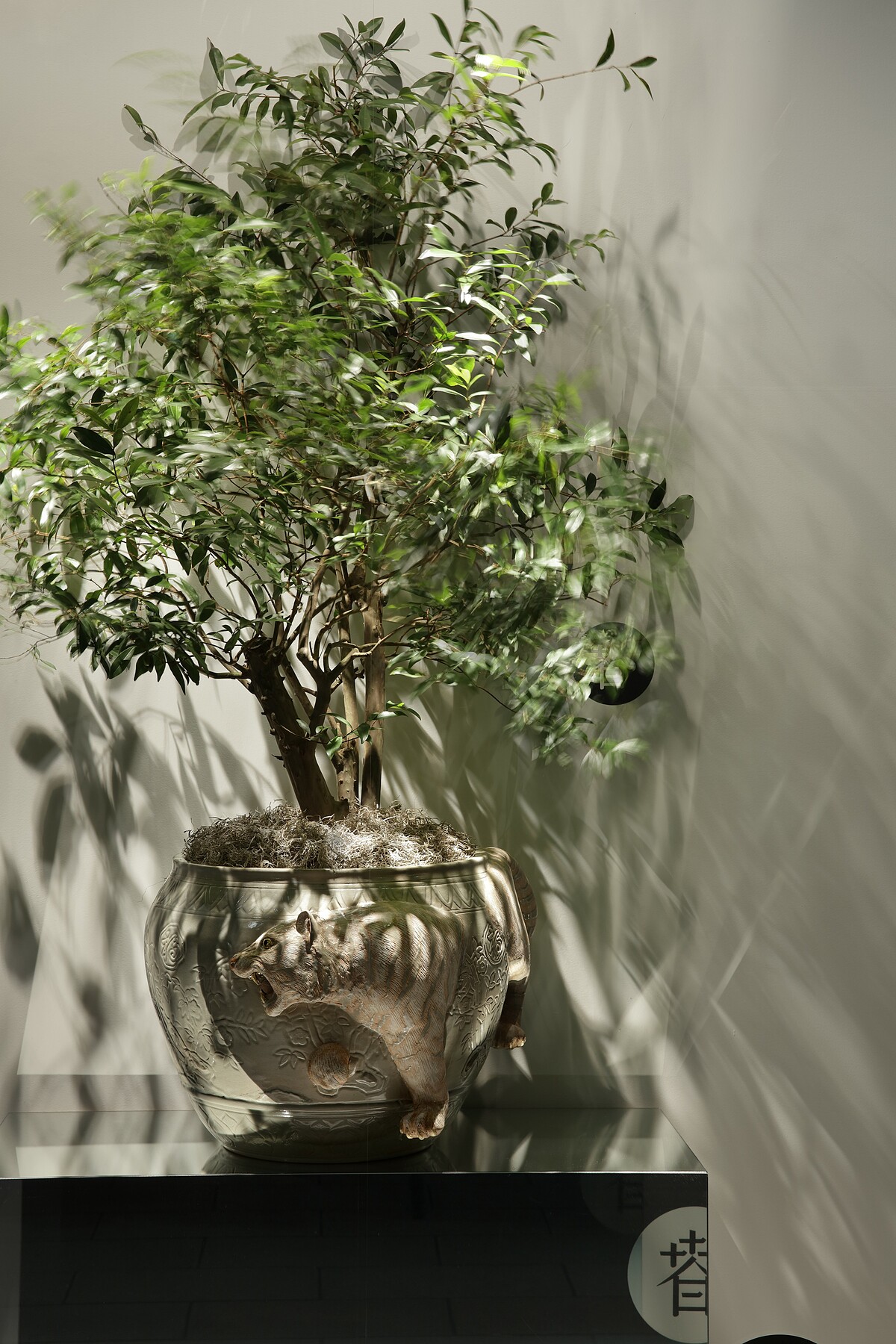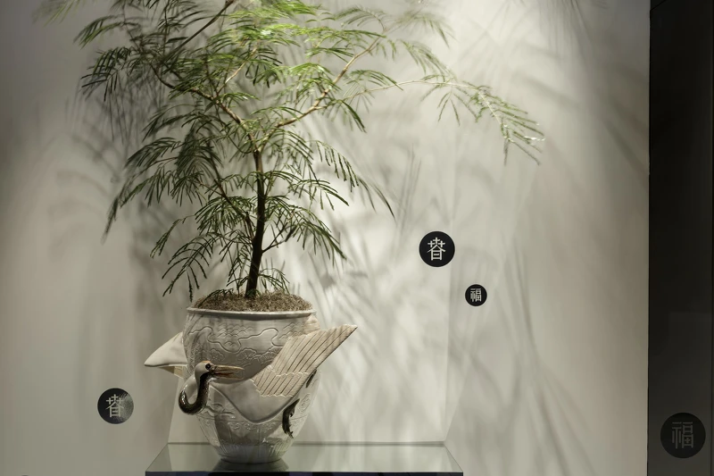 1986年出生的莊志維,畢業於臺北藝術大學新媒體藝術研究所和交通大學建築所。對莊志維來說,〈轉生樹〉靈感源自於2014年至東京Tokyo Wonder Site(現改名為Tokyo Arts and Space)駐村的經驗:初次見到冬日草木凋零景色的詫異與自身生命經驗的疊合。自然萬物因著更迭的四季與日出日落而變化,重複著不斷消長的生命輪迴,當時,他遇到的一位花藝家對他說:「植物藉由花藝延續下一段奇異生命。」讓他進一步去思考,對生命來說人為操作是殘忍的控制或是賦予另一種重生。在臺北、臺中、平昌、釜山各地展出過的〈轉生樹〉,隨著展期經過,植物與機械機構形成共生關係,5年之後,又轉回了啟發作品的原點—東京,對藝術家來說這次「資生堂藝術櫥窗計畫」格外有意義。莊志維現地挑選了兩種不同的常青植物,呈現出如鶴展翅的優雅與猛虎入林的生氣,離開美術館白盒子的〈轉生樹〉,在銀座街頭與資生堂對話「美的延續」議題,透過藝術創作的轉譯,將品牌美學與文化傳達給消費者。