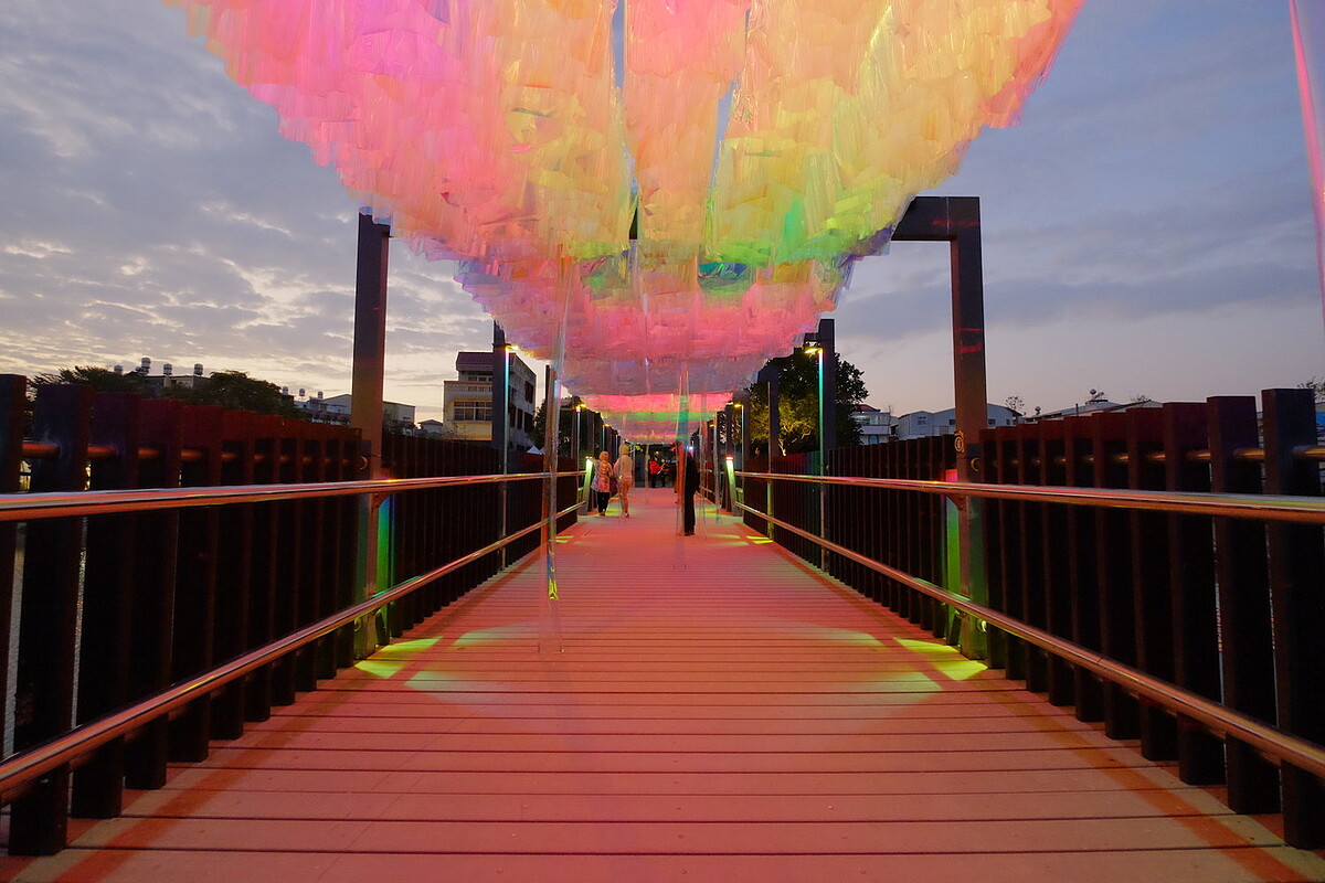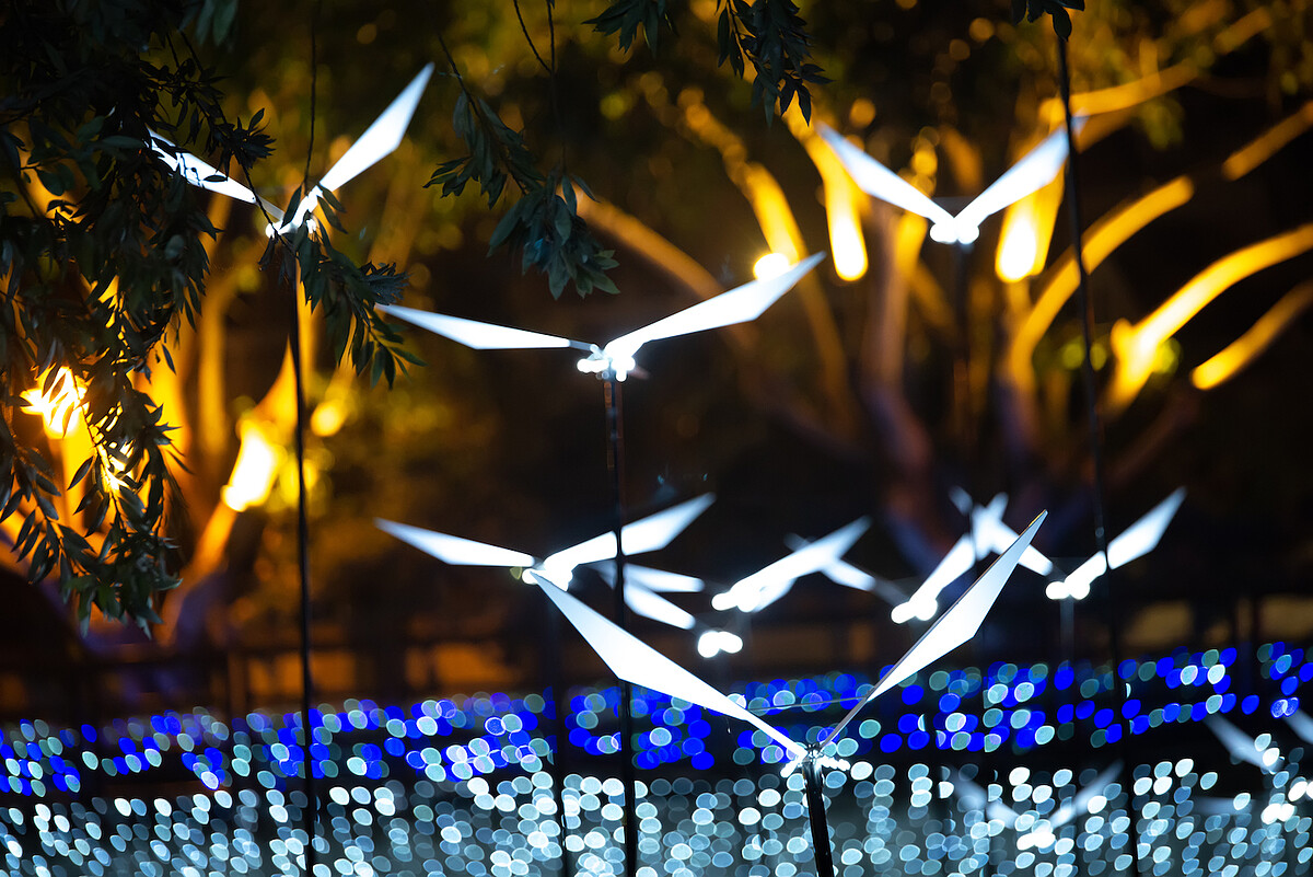 不僅畫面美到令人屏住呼吸,《2019月津港燈節》更以「隨光呼吸」為主題,邀集國內外擅長新媒體、科技藝術的當代藝術家參展,在蜿蜒的河域之間,看見「環境的呼吸」、「時間的旅行」、「我與你的風景」等畫面,讓觀者一同隨光線漫遊其中。