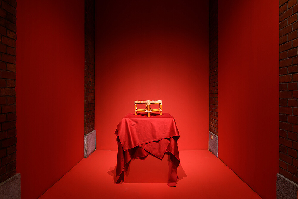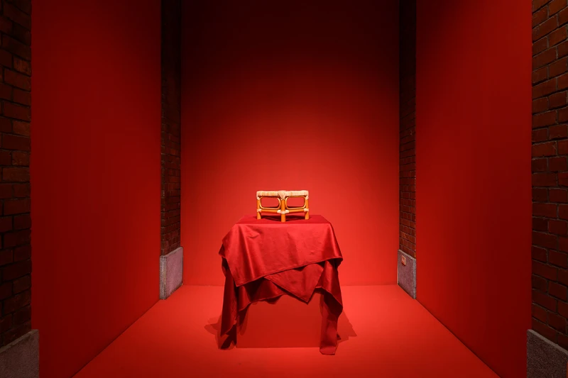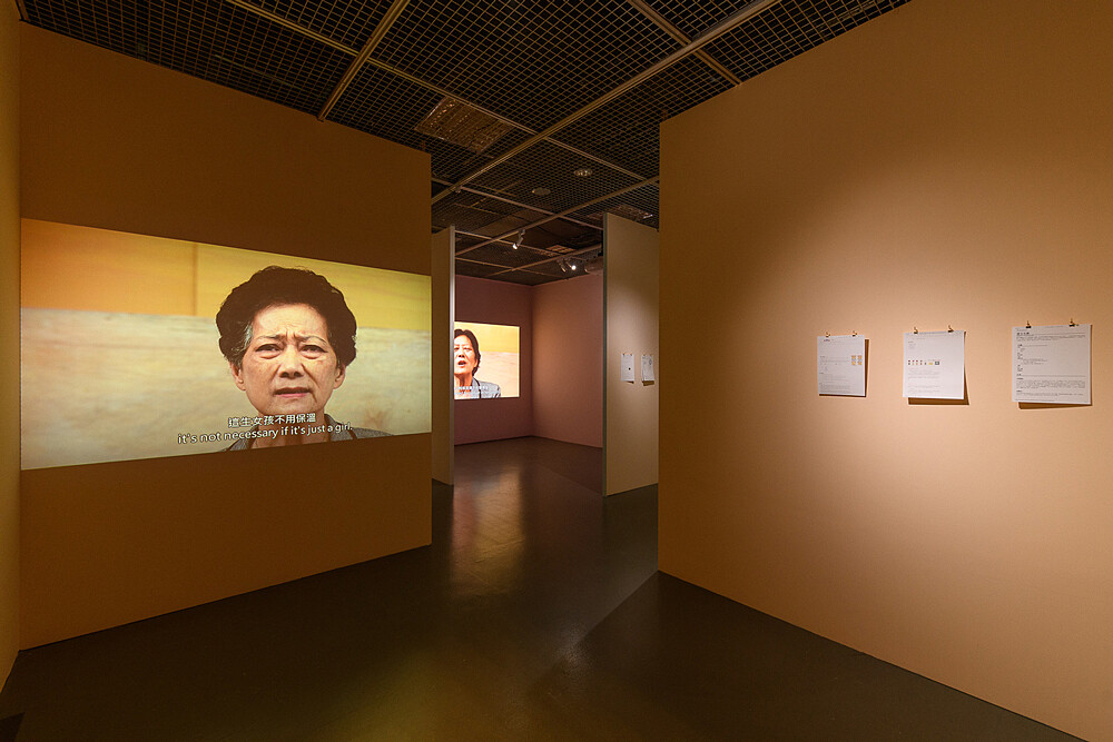 本次展覽空間也充滿著過往年代意象。在步入映滿紅漆的展間長廊裡,藝術家陳建北擺設台灣傳統嫁娶中必備嫁妝之一「生子椅」,除傳達出結婚的喜氣,卻也暗喻生子是件生死交關的過程。展間裡以粉色系油漆打造象徵孕育生命的展間,分別播放著已74歲的退休助產士—顏桂英女士及曾被接生的婦女影像,透過她們口述的人生故事,走入台灣特殊的文化背景—生產的民間禁忌、特殊的生產經驗、子嗣傳承與女性家中地位等議題。