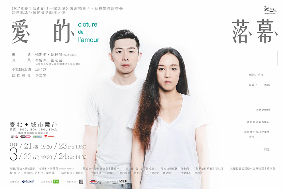 在愛情落幕之前,曾經深愛的兩個人究竟還有什麼話可說?由台南人劇團與法國知名編導帕斯卡・朗貝爾再度合作的《愛的落幕》,就要呈現如此令人心碎的主題。
