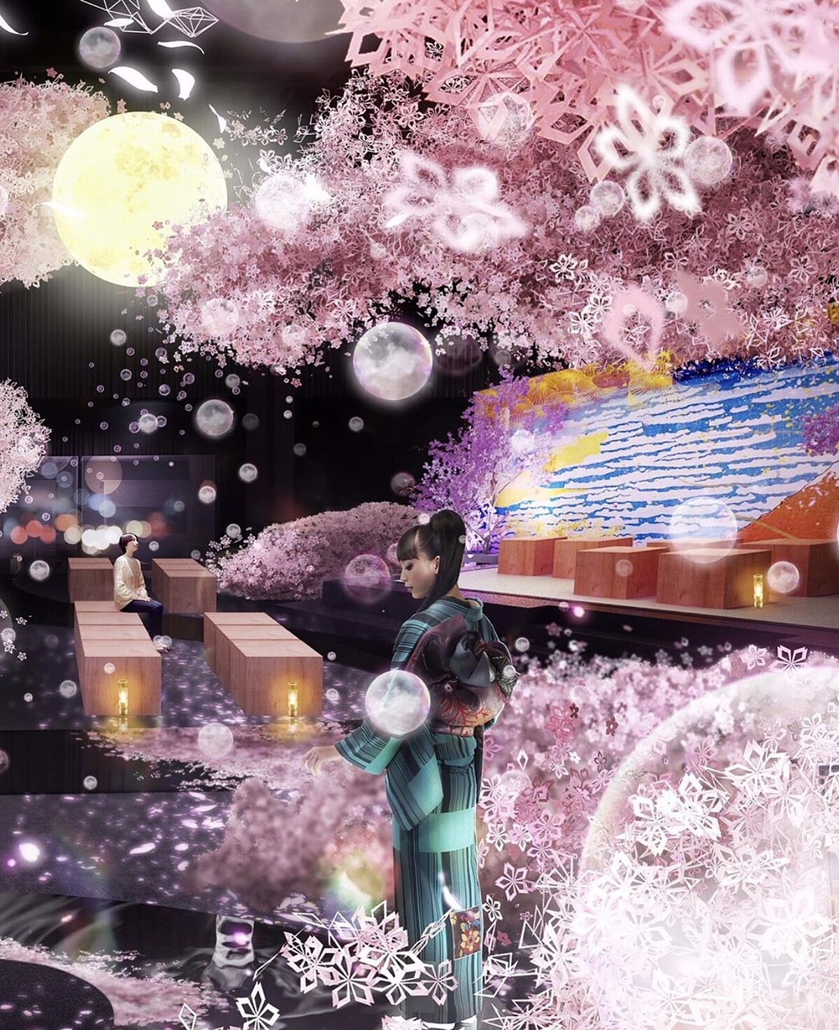 展覽內容以藝術裝置為主,其靈感來自春天令人沉醉的美景與日本傳統文化,邀請日本傳統藝術大師巧妙將日本獨有傳統文化Ikebana(花道)、Sado(茶道)、Kodo(香道),同時結合經典Waka(和歌)和傳奇藝術家葛飾北齋的浮世繪(傳統木版畫)作品融入其中。