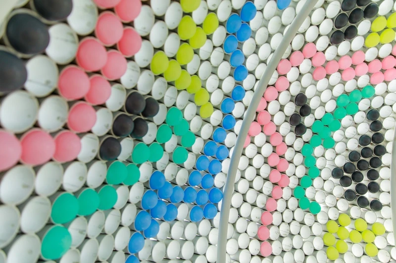 鋼雕藝術家梁賴昌,收集兒時對於甘仔糖的印象,由泡泡形狀的小點構成一個大型的圓體,從外側看或是內側看出去,都有不同的驚喜感受,但同樣不變的是如七彩泡泡般的夢幻感。與藍色的天空與海水,相互呼應出各位心底那塊私密的歡樂時光。