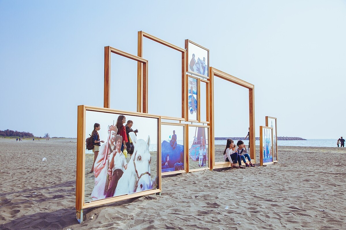 透過策展單位都市藝術工作室所募集對於台南海濱秋茂園的老照片,所有在此留下回憶的景象重新成為裝置在海灘上重現,充滿趣味性的鏡框與畫框效果,讓滿滿溫馨的印象烙印在觀者的心中,相當有味道。
