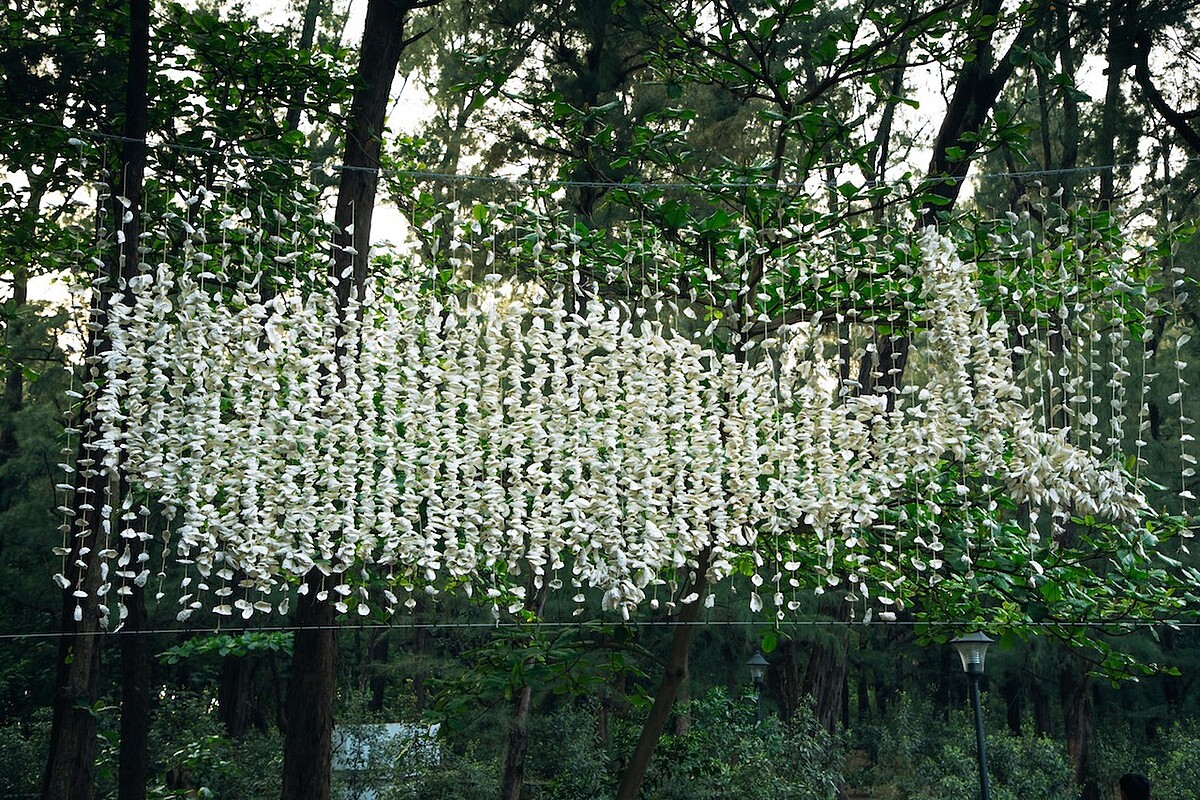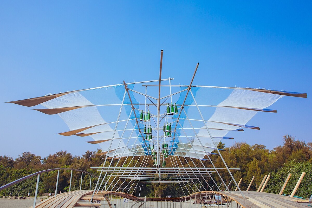 擁有濕地生態的漁光島,展現海陸交界處的豐富生態環境與景色,藝術團隊以此為意象,使用上百隻的彩色金屬管,打造出彷彿紅樹林的的空間,在作品之間,還設有吊床,觀者可以躺在吊床上,享受愜意的時光,既浪漫又舒適。