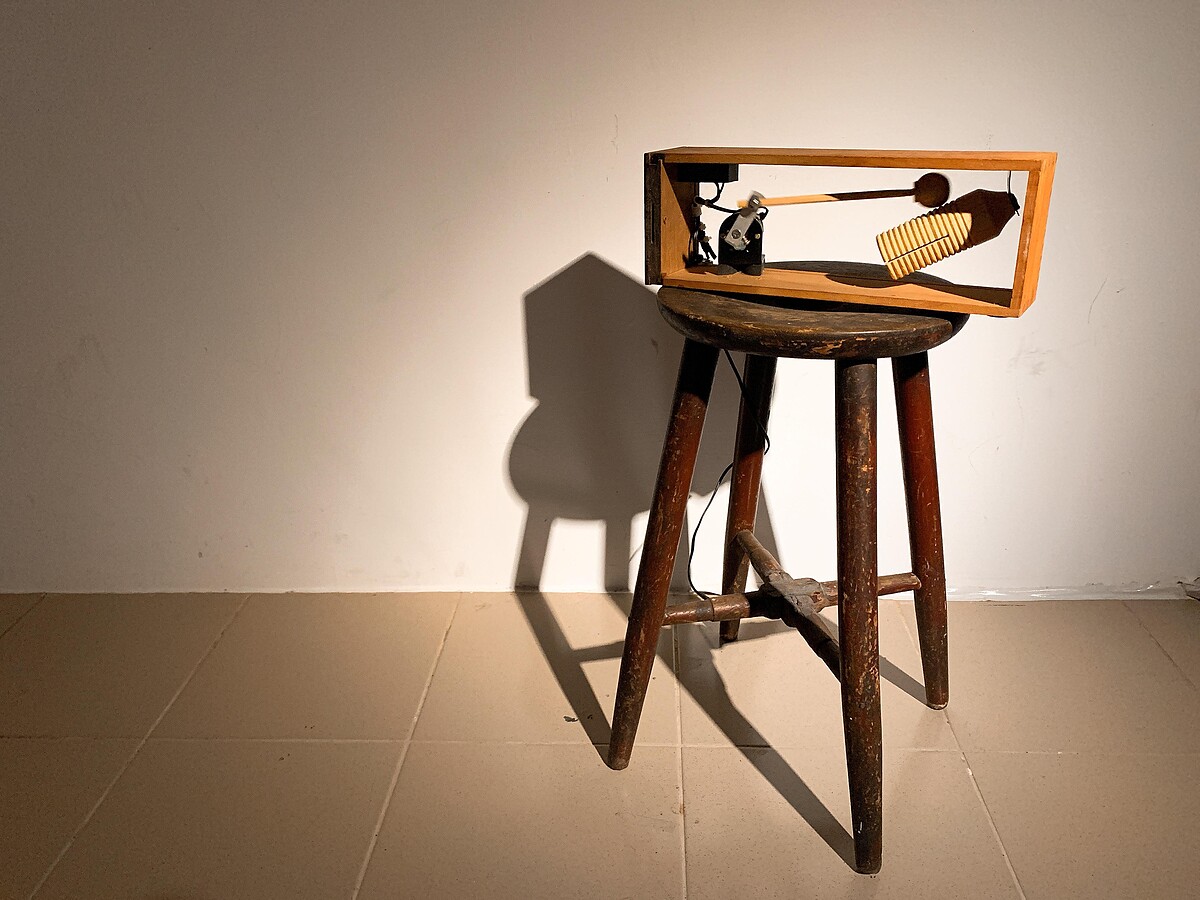無論多大年紀,相信每一個人都會把心底的某個角落,留給最珍貴的童年時光,因為在那段時間裡生活可以如此簡單、自然且真實。藝術家蕭聖健透過「低科技」手法,刻意呈現科技藝術中的手工感,在物件、機械與投影之間展現記憶中的自然樣貌。在展間中,你我不難看到生活中曾經出現過的熟悉物件,作品充滿溫度也帶著濃濃的懷舊氣味,同時也與寶藏巖這塊土地產生奇幻連結。