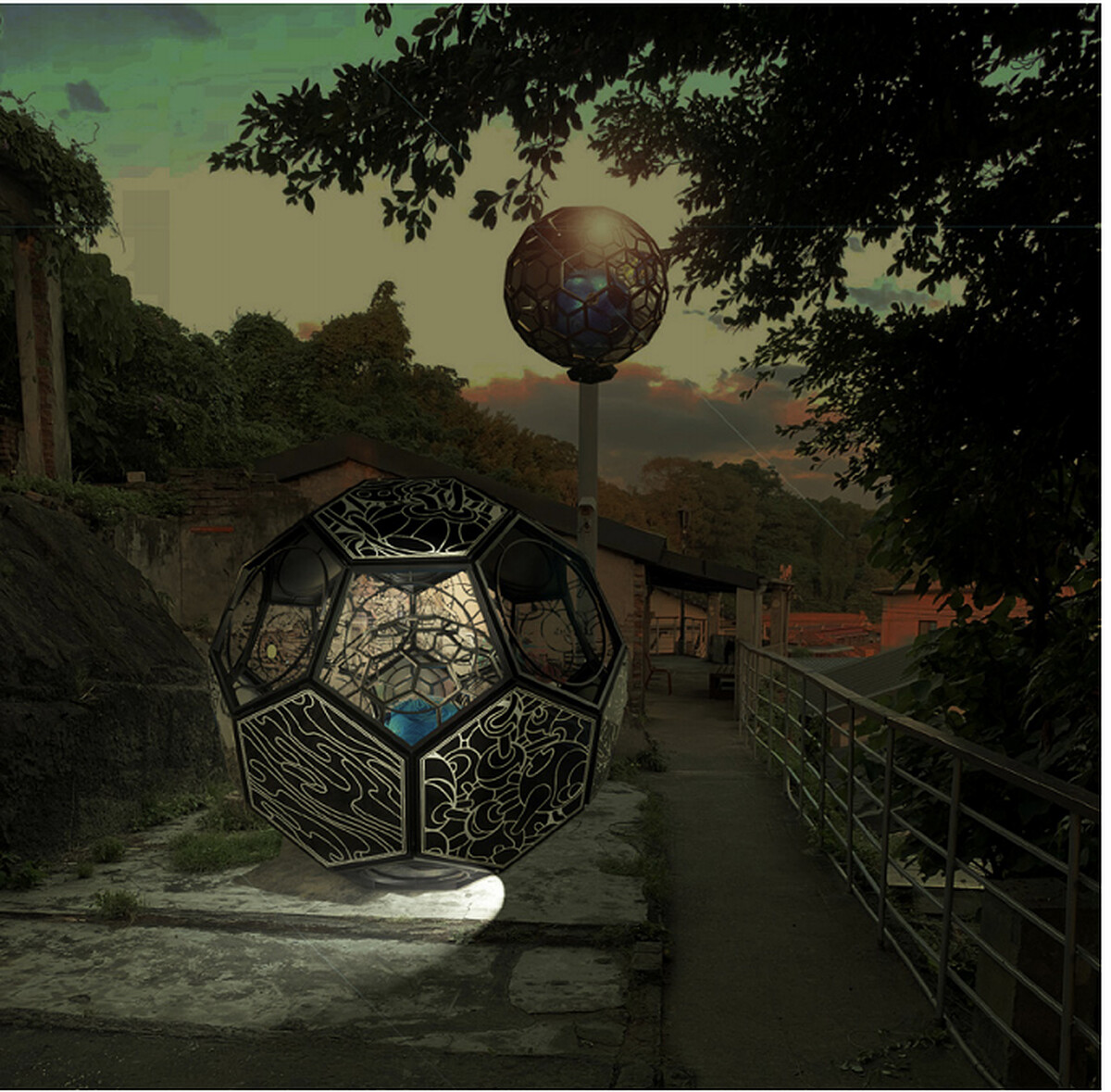 〈虹光樹:果實星球〉地點座落在寶藏巖最深處,卻散發著最奇幻的美感。藝術家許唐瑋藉由從城市出發到原始森林的旅程想像,帶領觀眾在寶藏巖這城市交界處,踏進另一個平行宇宙!巨型藝術作品如同山野間的植物果實散發著強韌生命力,也帶領你我看見了藝術作品中的夢幻詩意。