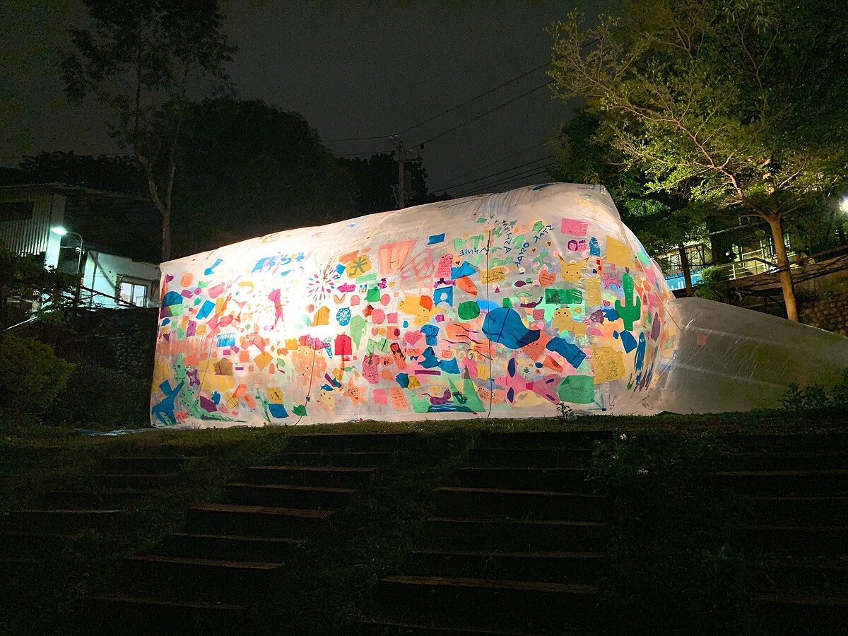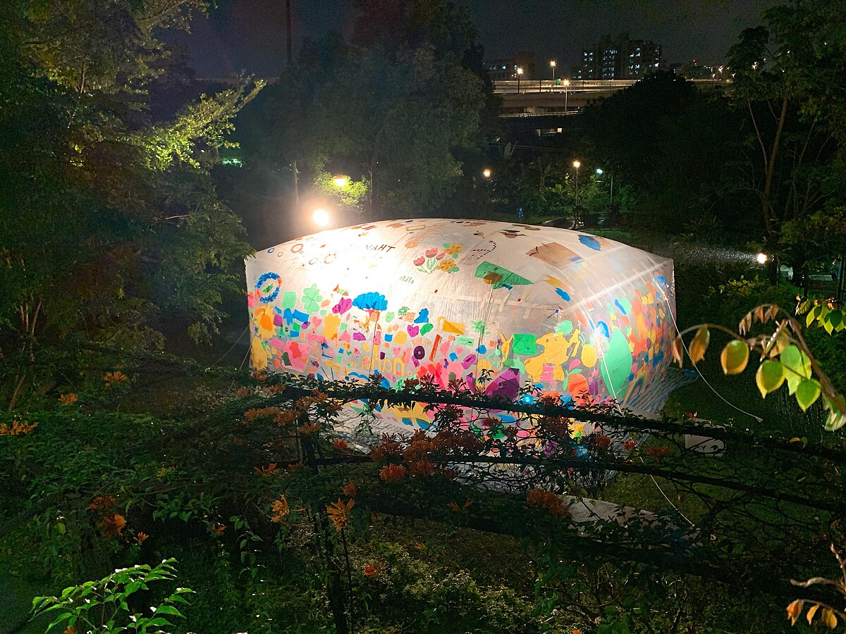 位於寶藏巖入口處綠野地的藝術作品〈巨蛋計畫〉,是個相當吸睛的巨型創作。出身日本水戶市的藝術家磯崎道佳,將〈巨蛋計畫〉視為一個現地製作、重現其不斷變化過程與狀態的作品,他將透明塑膠膜充氣作為展示主體,觀者可以選擇在外頭瀏覽,也可走進作品中,感受從內向外看的魔幻景緻。藝術家更希望透過它來傳達「尊重、包容多樣性社會」的想法,期待觀眾步出巨蛋後能為思考帶來改變。