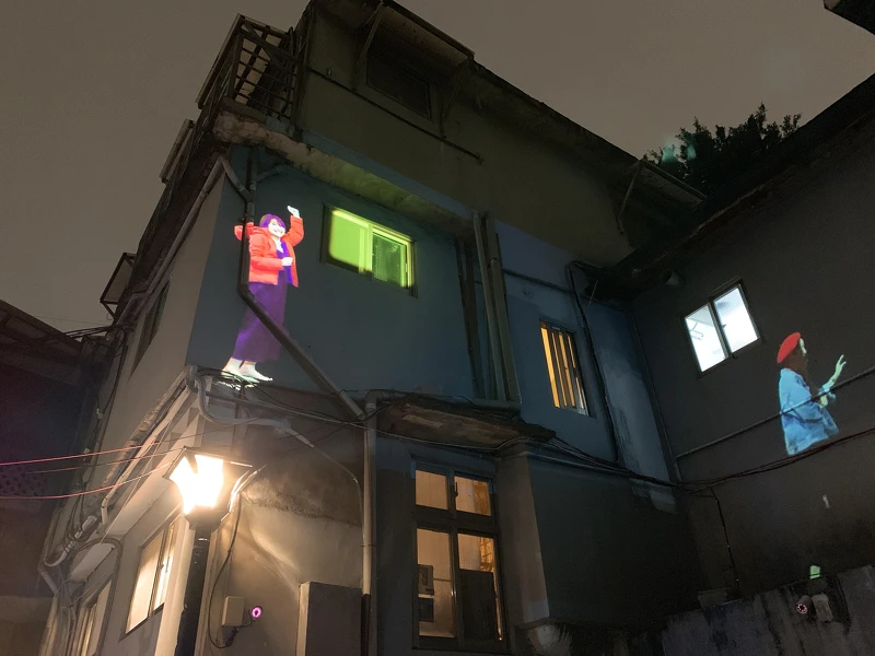出身於大阪的日本藝術家瀧健太郎,不僅曾獲日本文化廳獎助,也曾於東京、馬賽、台灣與中國等地舉辦展覽。這次他將影像投射在寶藏巖十字廣場三層樓高的建築上,用繽紛如同電玩的動態視覺,帶領觀眾釐清現實生活中的困境、重新找回快樂與熱情。