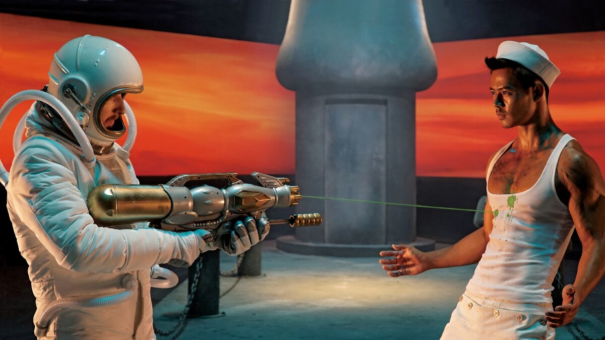 作品《激情》的故事從太空人「哈爾」出現在由陽具構成充滿慾望的碼頭開始,三位水手激烈的爭奪與鬥毆,接著的死亡讓激情消失地無影無蹤。如同片名,「激情」不僅僅來自於肉體的慾望,更是生存能量的動力。作品受德國導演法斯賓達(1945-1982)的《霧港水手》,1982、法國導演高達(1930-)的《激情》,1982和美國導演庫柏力克(1928-1999)的《2001:太空漫遊》,1968 等電影之影響,透過重新詮釋與解讀,藝術家將「慾望」寄附於「影像」上,呈現創作的激情如愛慾給人存活的動能。