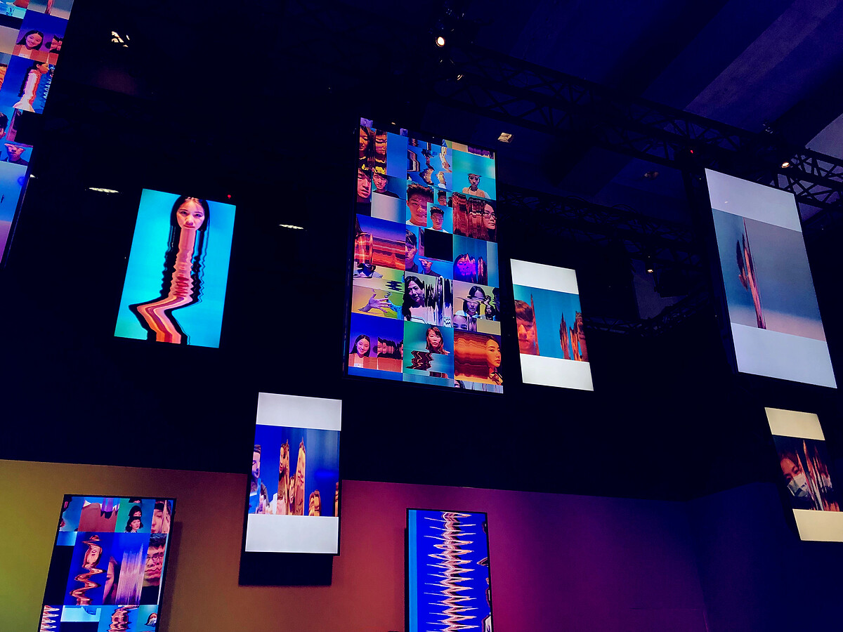 站在ZenBook Pro Duo的前方,將自己即時投影在巨大螢幕上,並且搭配藝術家王宗欣特別設計的直向影像變形,豐富飽滿的色彩可以是如同花朵綻放一般,也可是甜美堆疊、讓人垂涎的甜點,讓你此時此刻也成為整個展間展現美力的一部份,真的超酷!