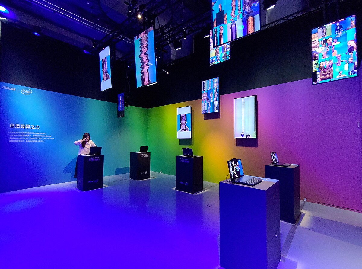 經過前面三區的體驗,相信不少人都對 ZenBook Pro Duo 有些好奇,到底是怎樣的一台筆電可以擁有這麼厲害的運算效能,不僅能呈現豐富的立體色彩,還能即時將拍攝的影像進行運算投射在螢幕上。在「美・力體驗區」可別以為就是讓你體驗ZenBook Pro Duo搭載第9代Intel® Core™ i9處理器的強大效能,當然這也是很重要的一個重點!但除此之外,這區還設計有拍攝舞台,讓你走進巨大的ZenBook Pro Duo之中,與背景影像創造出映照自己美力的獨特照片。