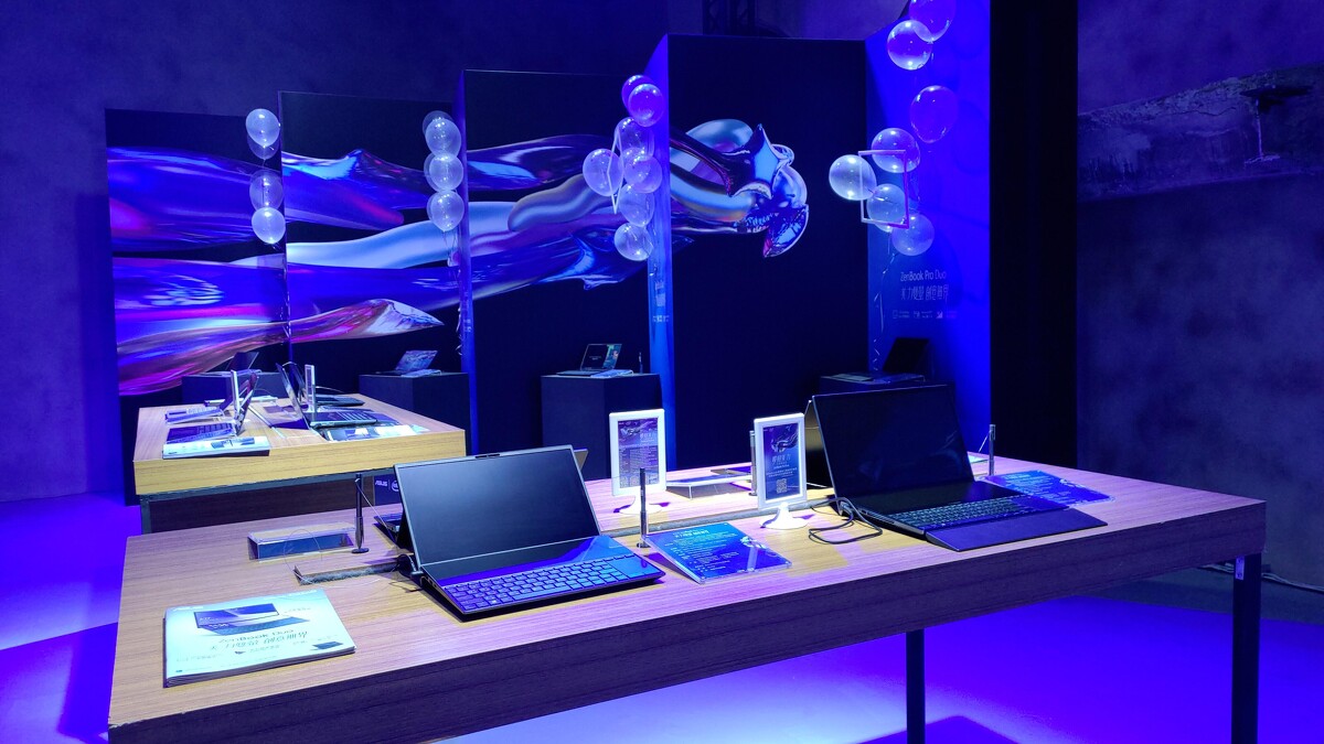 首先來到的就是代表「映照此刻之美」的第一展區,一走進展間就可以看到ZenBook Pro Duo的螢幕展現出的迷幻畫面,與下方可觸控的 ScreenPad Plus 螢幕選單,可透過ScreenPad Plus操控現場裝置,讓美力無限擴展!