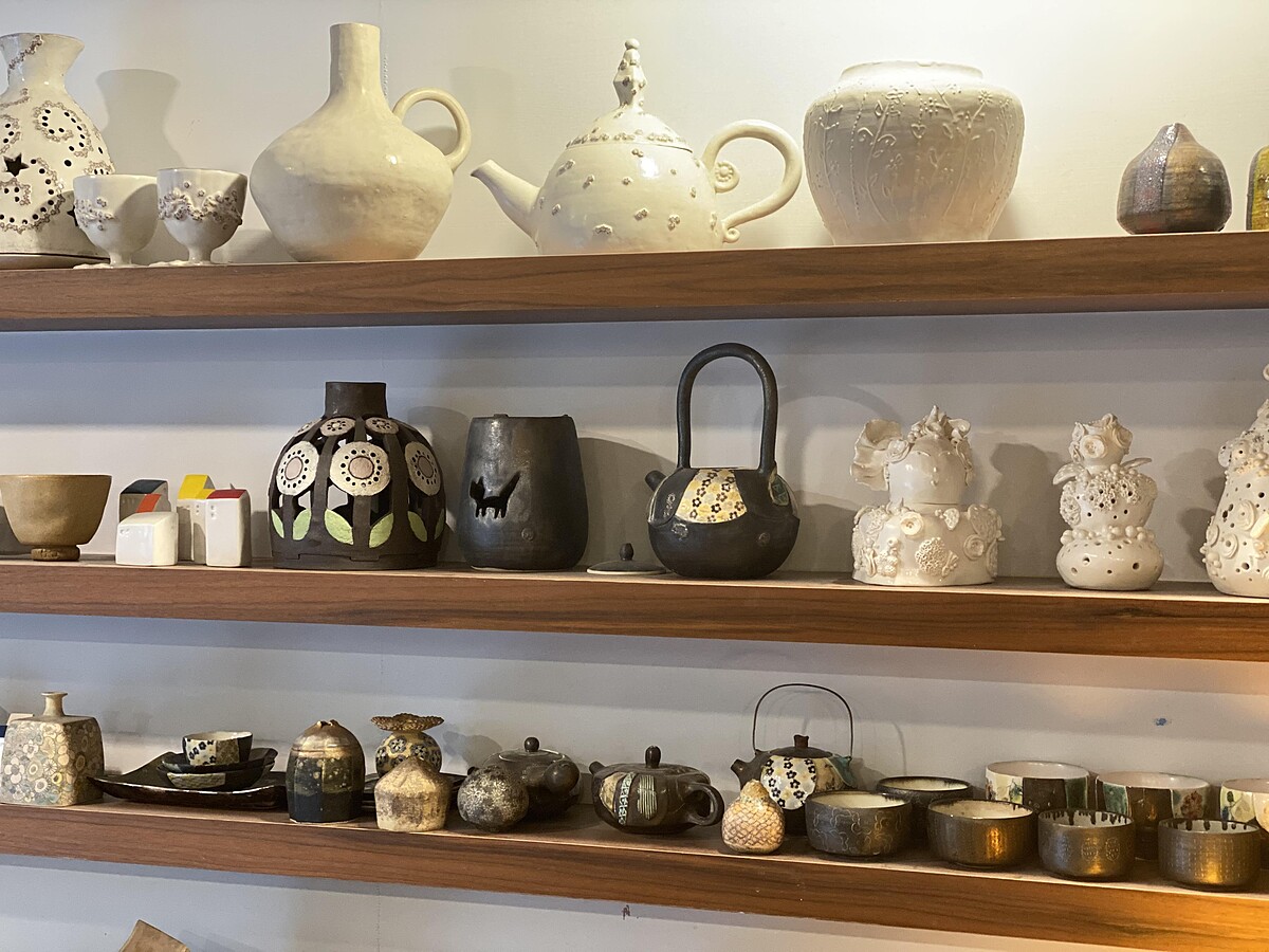 位在天母的「mimizan米米桑工作室」今年十月已邁入第十年,創作風格完全考驗手作,從陶土到成品不靠一點機器,所上的釉彩也是Doris老師自己研製,在色彩的表現上溫柔細緻,是難得一見的生活陶展覽。