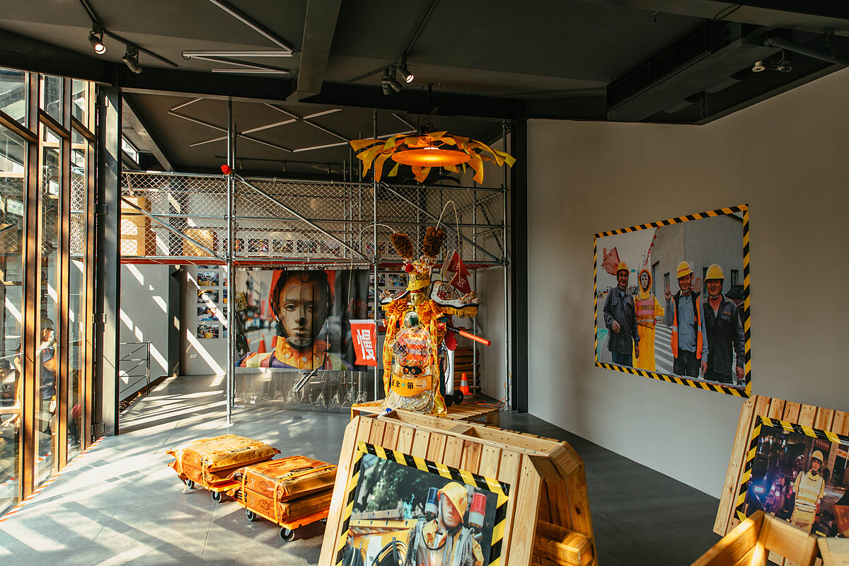 在展間牆面上則將邀請鐘聖雄以有力直白的力道,捕捉工地上常見的指揮警示人偶,這些人偶在工地上被師傅們也像人一樣看待,各有故事和名字如阿呆、楊領班、傑克、麥克、安妮、瑪丹娜等,傳遞這塊土地上獨特的樣貌。