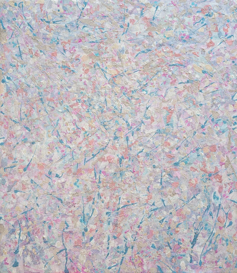 更值得一提的,則是點與線的排列能夠製造畫面的流動與方向性,如同欣賞音樂或詩詞的抑揚韻律,讓欣賞其作品時總是充滿輕盈的愉悅感受。