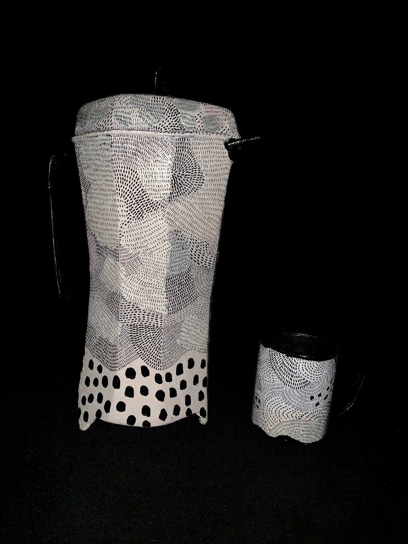 對Wanyan Novi而言,靜物畫是一項非常重要的技巧,培養對於物件的觀察力以及表現存在的狀態,對他如何使用層疊、交錯、暗示線條與點描來表現物件具有關鍵影響。這次來台展出的「Dialogue(對語 )」系列立體作品,採用靜物形體成為立體畫布,再將顏料、鋼珠筆描繪其上,讓物件實體與繪畫構成的空間產生有趣的對應。