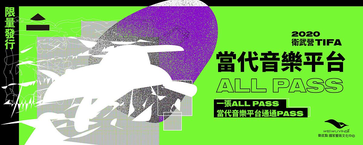 作為南方的藝術焦點,衛武營國家藝術文化中心除了呈現精湛的國際級表演、令人驚嘆的新馬戲作品,它更期許能成為從台灣放眼國際的音樂表演重鎮。衛武營將2020年TIFA定位為「當代音樂平台」,串連一系列以音樂為核心的表演藝術創作,讓觀眾與表演者之間產生更多的連結可能。此外,更大方推出限量五十張的「All Pass」套票,觀眾只要憑著「All Pass」進場,便能觀賞全數節目。