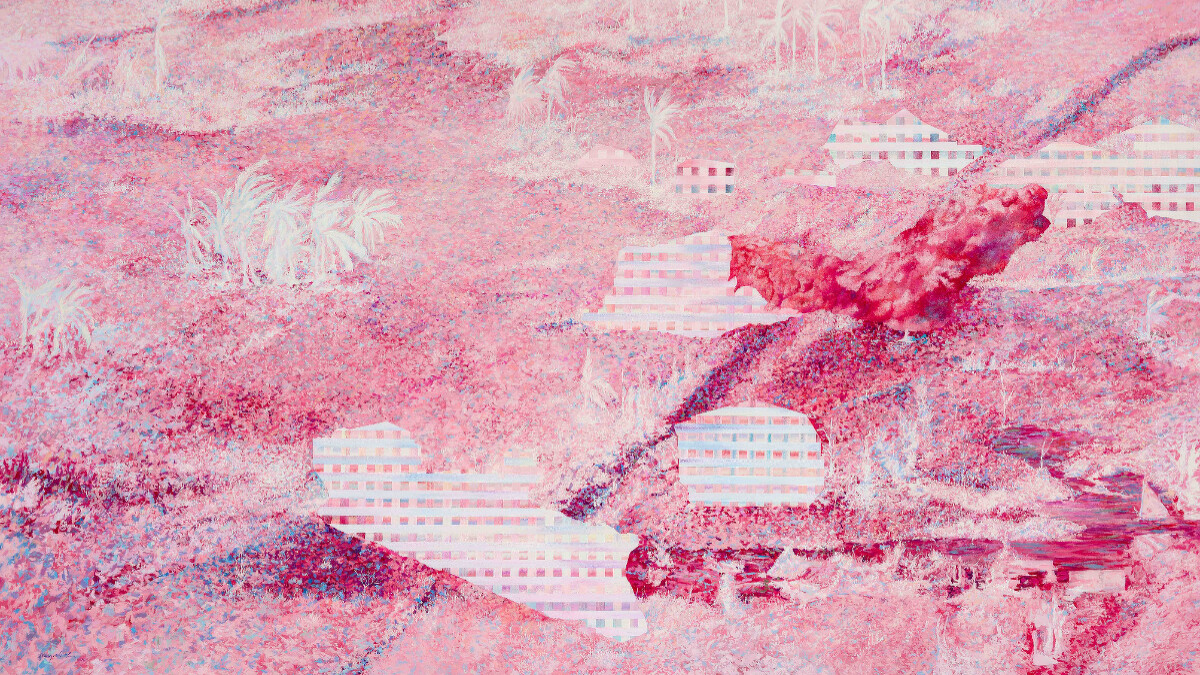 聚焦展出作品本身,藝術家黃士綸的繪畫從個人生命經驗出發,此次在凱基敦南共展出七張精彩作品。作品裡常藉由一道從天而降的光,暗示著生命的前兆或奇蹟的誕生。〈大事件〉系列描畫奇觀災難場景發生的前兆及狀態:一幅幅質地夢幻的無人之境,實則潛藏了末世預言般的環境暴力圖像。以南亞海嘯、土石流,甚至史蒂芬金的《迷霧驚魂》為畫作發想,藝術家在甜蜜與衝擊的反差中,讓觀者反思我們所處的現實。