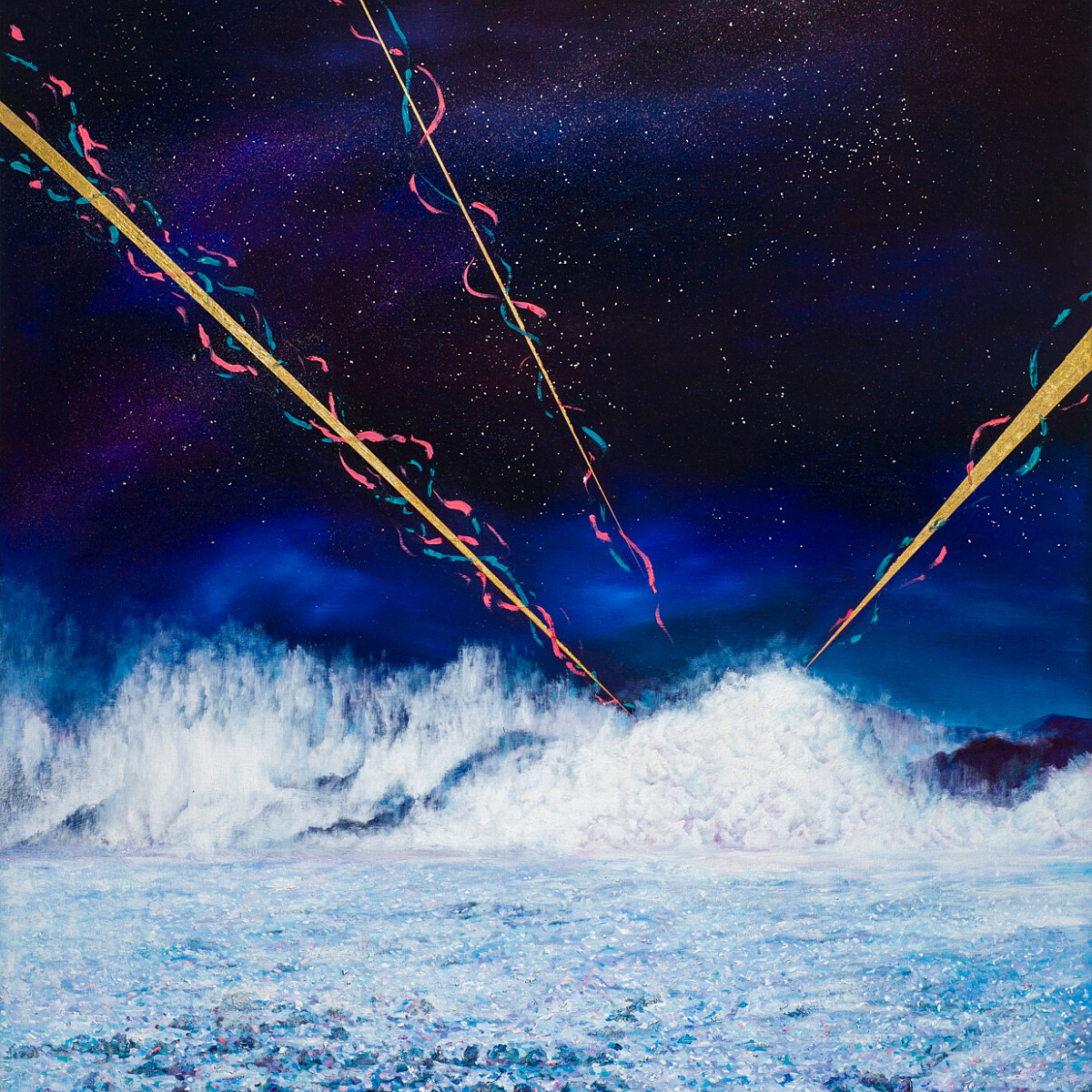 作品中所產生的未知,有如電影高潮前的鋪陳,讓我們看見環境、生命的脆弱;當無處可逃,屋毀瓦殘的時候,人性的價值又彷彿在光之絲線中體現出來。甚至,我們可以延伸當前的全球處境,肺炎疫情肆虐猶如世紀浩劫,藝術家透過作品想表達在穿越各種黑暗後,才能體會光明。