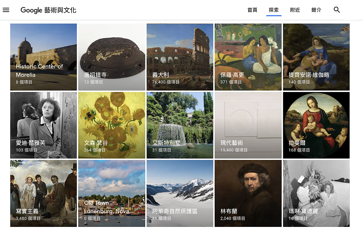 於2011年推出,原名 Google Art Project,運用著名的 Google 街景技術拍攝博物館內實景、以超高像素拍攝館內名畫,讓大家能隨時隨地上線參觀。2016年進化為「Google 藝術與文化」,並結合應用程式、影音平台、網站等多元方式呈現。