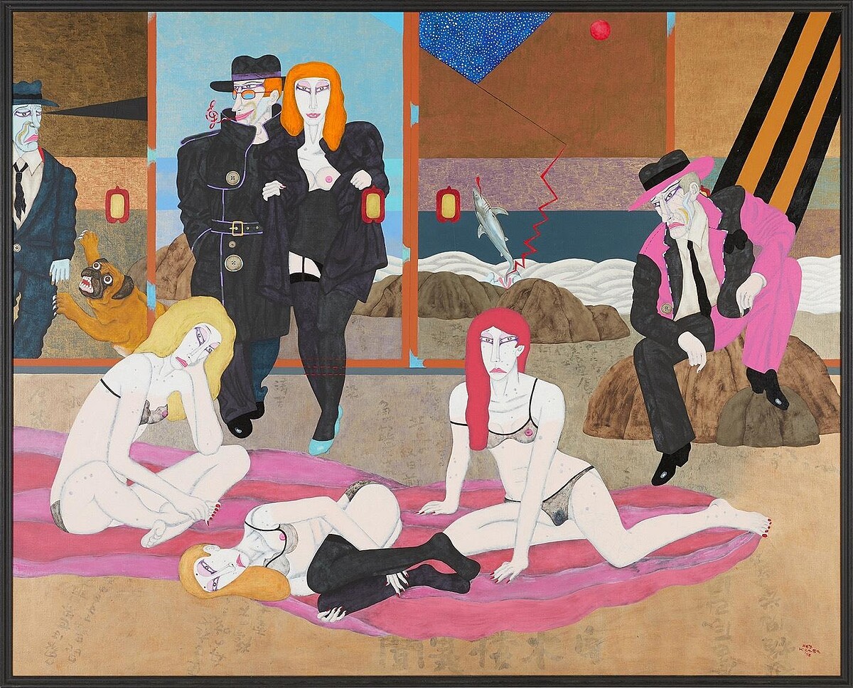 田名網敬一曾說:「如果距離普通人太遠,藝術是沒有未來的。」稱得上日本普普藝術第一人的他,眼中的世界是消費至上的眼球經濟,刻意選用各種強烈對比色,將金魚、公雞、好萊塢女演員、迪士尼卡通人物等元素放入畫面,反映戰後西方世界的無形入侵;後期作品則加入松、鶴、園林等更多東方元素。田名網敬一的作品類型也從動畫拓展到絲網印刷、卡通插圖、拼貼畫、立體作品等等,形式多元而豐厚,可以說是日本普普藝術第一人。