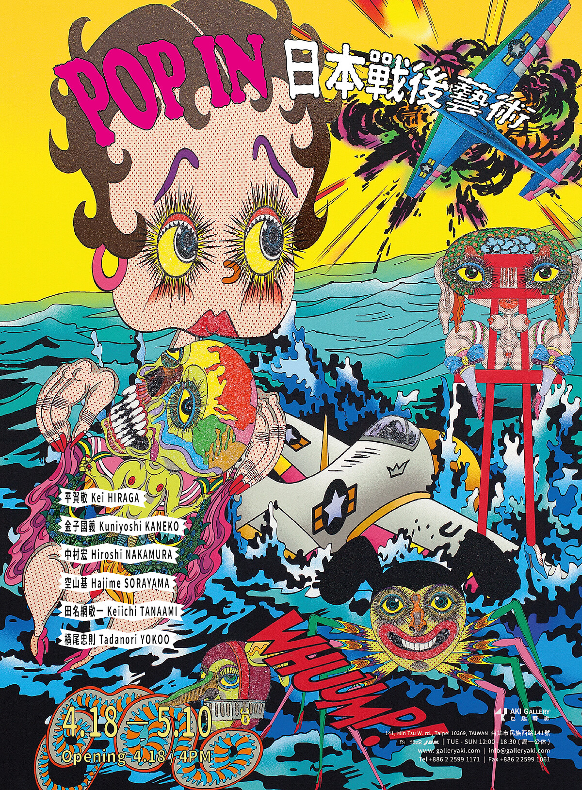 也趣藝廊這次在《POP IN 日本戰後藝術》網羅六位日本普普藝術大師的作品,這群大師身為戰後的一代,充滿戰火餘魅的童年也成為創作泉源,同時在西方文化潮流的影像下,滋長出獨特的日本普普藝術萬花筒。