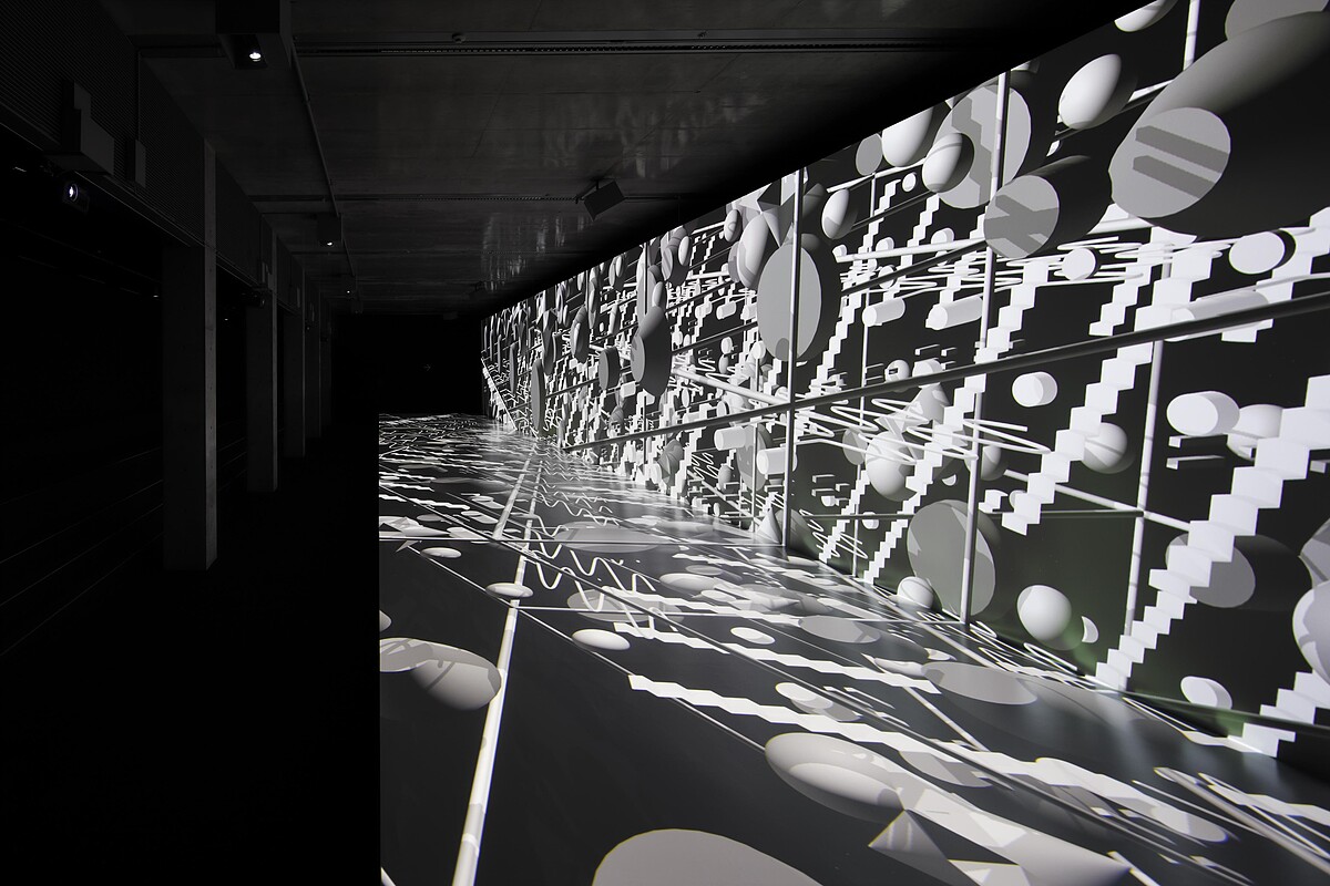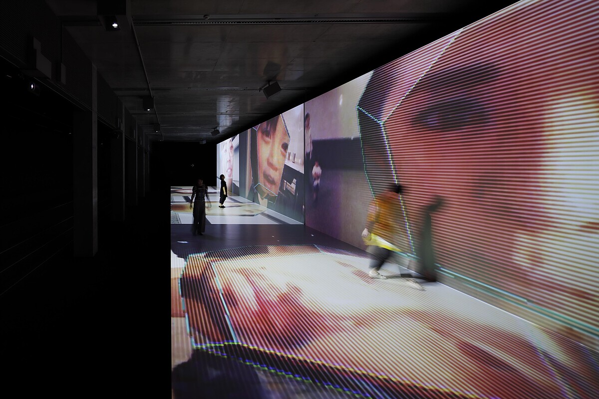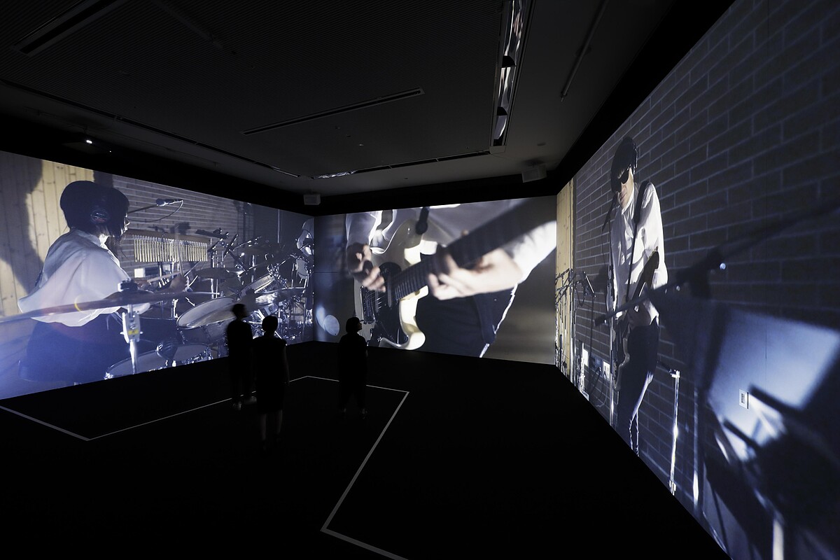 為了在有限的空間內呈現多部影像作品,國際知名的空間設計師片山正通 ( Masamichi Katayama / Wonderwall® ) 化繁為簡,將偌大的展覽空間保留給在 25 公尺寬的巨幅投影打造的沉浸式劇院內,以輪播方式展示創作,讓觀眾的感官體驗隨著空間放到最大。