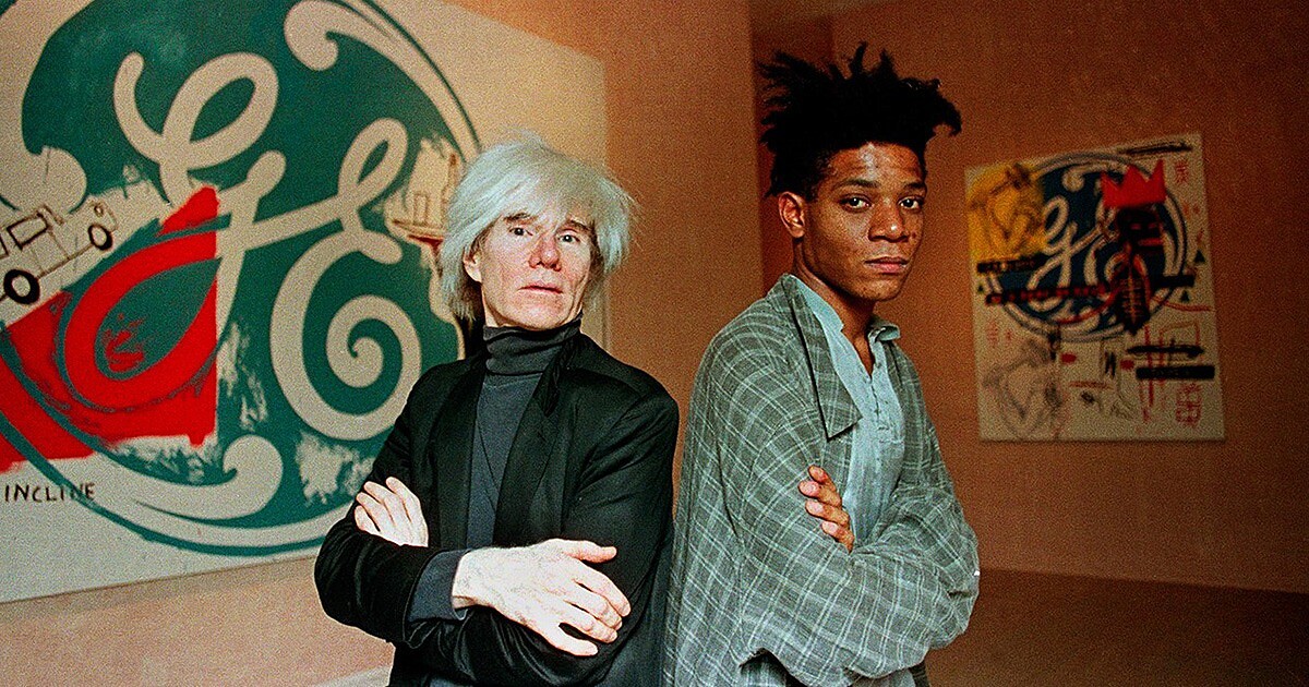 普普大師安迪沃荷和巴斯奇亞的故事,是提及八〇年代就不能忽略的美好篇章。那是1981年某個深夜,他倆在著名中餐館 Mr. Chow’s 中相遇,並透過瑞士富商 Bruno Bischofberger 提議兩人合作,於是從1983至1985年之間,巴斯奇亞的塗鴉便與安迪沃荷富有流行氣味的創作互相結合,好比畫作《的士,45街與百老匯街交匯處(Taxi, 45th/Broadway)》,就成為見證他倆藝術交融的精彩證明。此後,這兩位藝術大師不僅成為一輩子好友,安迪沃荷對巴斯奇亞而言,更如同伯樂、生命導師一般的崇高存在。