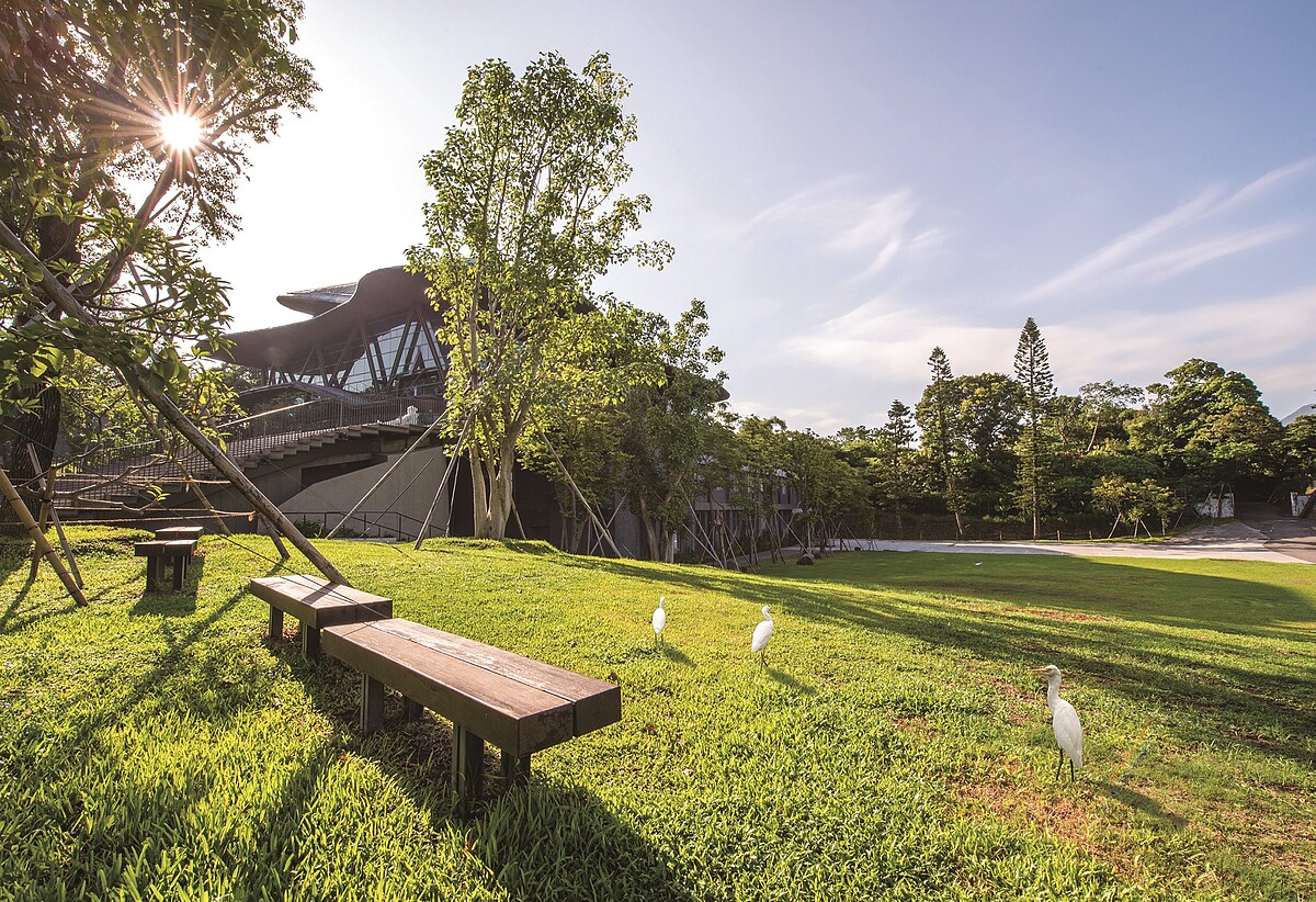 位於淡水的雲門劇場,遠眺觀音山與淡水河出海口,淡綠玻璃帷幕的建築,融入恬靜的綠色地景,匯聚全球舞姿曼妙的舞者、藝術家們,跨界交流演出的平台。