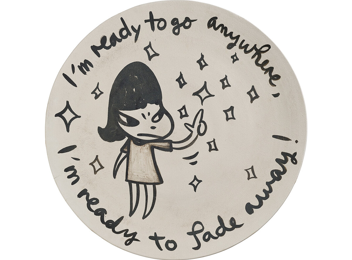 本作品創作於2007年,是奈良美智少見的手繪瓷盤創作,名稱浪漫移植自搖滾詩人鮑伯・迪倫(Bob Dylan)的民謠歌曲《搖鈴鼓的人》。過去奈良美智曾說,藝術沒有邊邊角角的必要,而陶瓷這項媒材,不僅達成了大師對創作的想望,也喚醒了他童年初次體驗藝術的記憶。