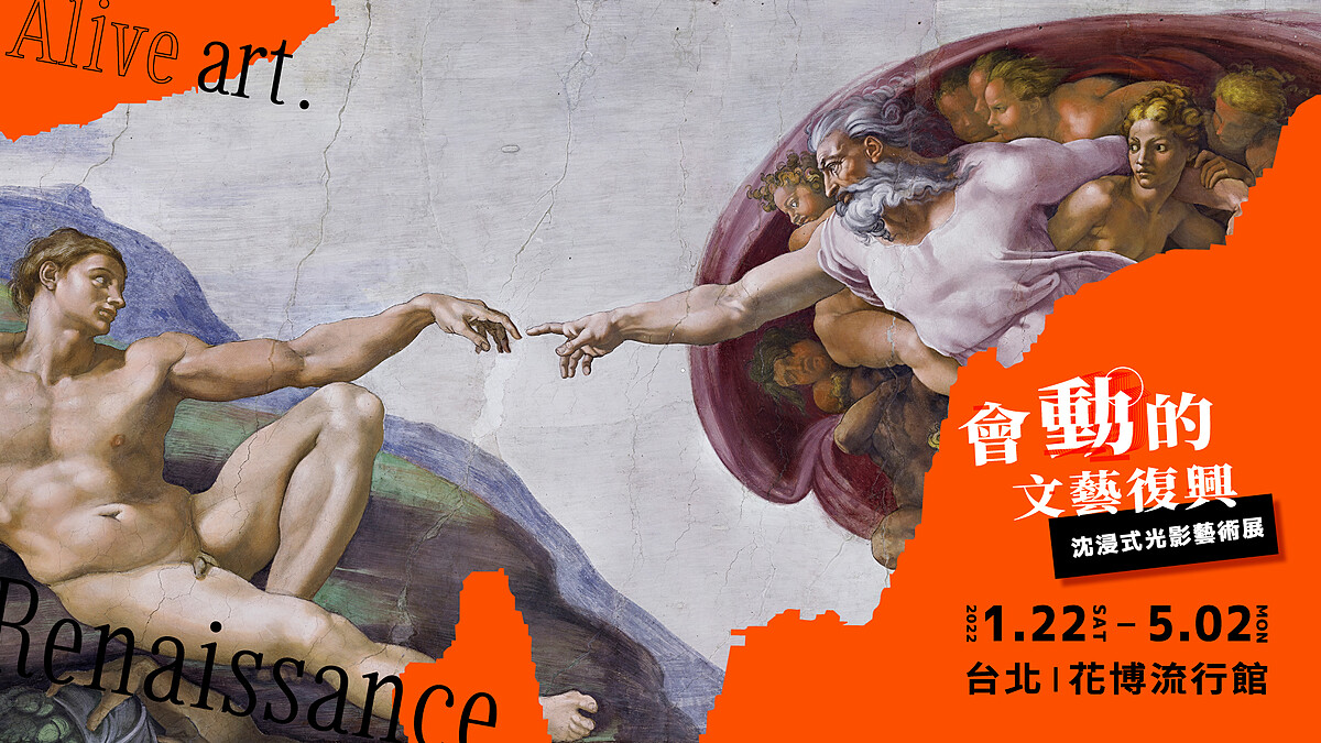 歷經疫情延宕,《會動的文藝復興》特展終於重新啟動,將在2022年一月回歸!《會動的文藝復興》展覽蒐羅了眾多博物館、美術館及私人收藏裡文藝復興時期的20位大師200幅名畫,以及「世界文化遺產」聖母百花大教堂穹頂的巨幅濕壁畫「末日審判」,將藉由科技方式呈現,打造以「文藝復興」為焦點的沉浸式體驗。