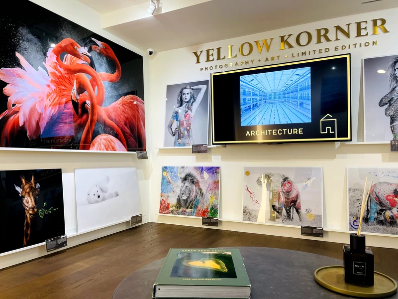 YellowKorner的每一個藝術品皆從歐洲實驗室空運來台,作品最外層為0.2公分的有機玻璃,再搭配富士的銀鹽相紙及C-print沖印工藝,同時使用鋁質背板裱褙於作品後端,讓博物館等級的裱框技藝能夠更加襯托藝術品的質感;最重要的是,藝術品背面都會附上唯一的EAN國際條碼及獨有編號並在真品證書上蓋上關防。而藝廊藝術品分成八大類別及五種不同大小的尺寸,無論是商業空間或居家裝潢,都能輕鬆讓藏家們找到喜愛藝術品。
