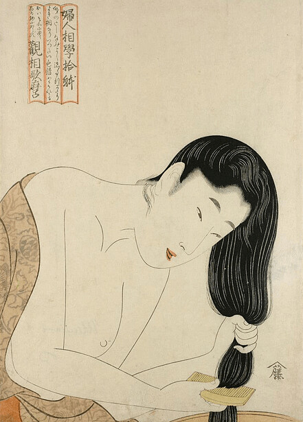 除了上述珍品之外,《Classic Nudes》也沒有忘記當下年代所注重的多元審美觀,在「Another Perspective」區域中,便收錄了不同性別、膚色與種族的相關作品。好比日本著名浮世繪大師喜多川歌麿的〈婦人相学十躰〉,便體現了女性洗髮時的身體美感;此外,巴西藝術家 José Ferraz de Almeida Junior 所繪的〈巴西伐木工人〉,畫面裡剛結束工作的男人,渾身濕漉漉沾染水氣,赤裸上身的他微閉著眼望向前方一角,展現男性的肉身美學。
