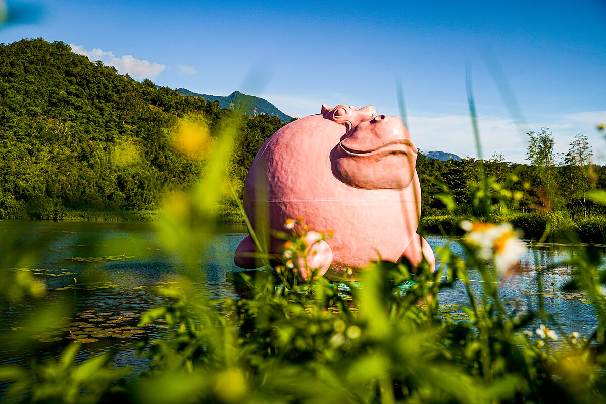 無論是由碎形木條堆砌而成的《貓咪種子》、圓滾滾粉紅河馬浮現在湖畔,又或是懸掛在樹幹之上的潔白竹繭,這些充滿浪漫與夢幻綺想的藝術作品,皆位於縱谷關山與鹿野秘境之間。由水土保持局臺東分局推廣的「萬物糧倉・大地慶典」計畫,以花東縱谷為腹地,開啟《縱谷大地藝術季—漂鳥197》展出,共邀七位藝術家作品參加,強化在地經濟並樹立生態美學新典範。