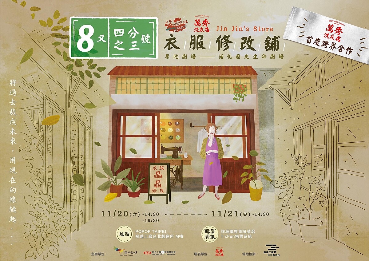 《8又四分之三號衣服修改舖》將在2021年11月20日至21日於POPOPTAIPEI瓶蓋工廠台北製造所 M 棟演出