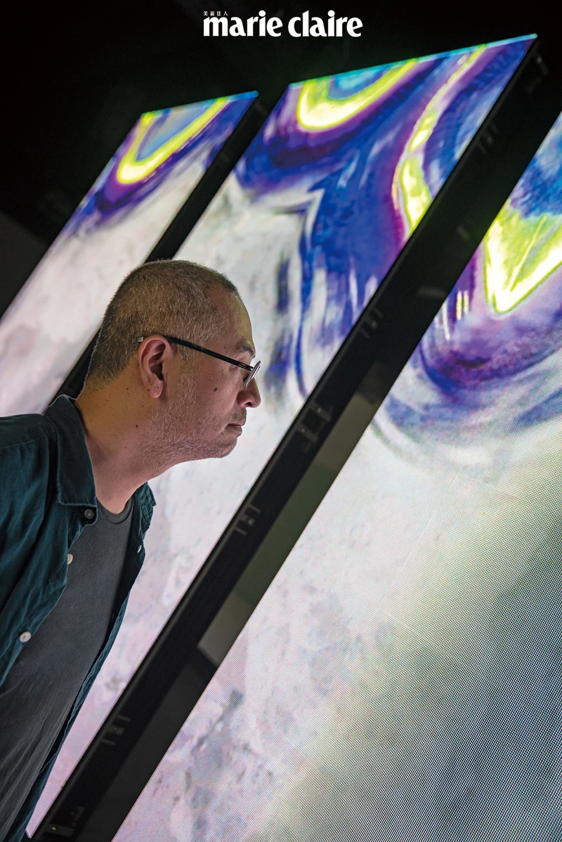 這一座以六個螢幕組成的裝置,是以演算法改變空拍的河川影像,並藉電腦判別影像視覺,自動產生相應背景音樂的大型作品。瑰麗奇美且不斷流斷變幻的影像,以及流暢悅耳的聲響,引人駐足,而這樣的藝術品,人為介入的程度卻很少,他說:「像這樣的作品都在打破古典的印象,人的角色也許會變弱,甚至會交給機器。」人類書寫了程式,卻無法掌握數據資料隨機排列組後所呈現的結果,在這樣的創作方式中,今日的藝術與未來的創作,究竟將被引流至何處?我們又該如何界定藝術?
