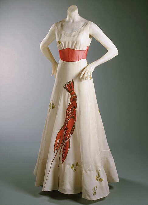 今日,時尚與藝術的結合早已不是新鮮事,甚至你我熟知的藝術家、美術館和攝影師,都一次次被轉化為人們身上的服裝打扮。論及最早跨界時尚圈的藝術家,達利無疑是其中的先鋒人物。1930年代,達利十分著迷於時尚設計大師 Elsa Schiaparelli 之作品,兩人之間的跨界,放至今日來看,依舊大膽、精彩且激盪著創意。好比被印上巨大龍蝦的白色晚禮服、頂上戴著的「鞋帽」⋯⋯,都是達利與 Elsa Schiaparelli 共同寫下的輝煌紀錄。