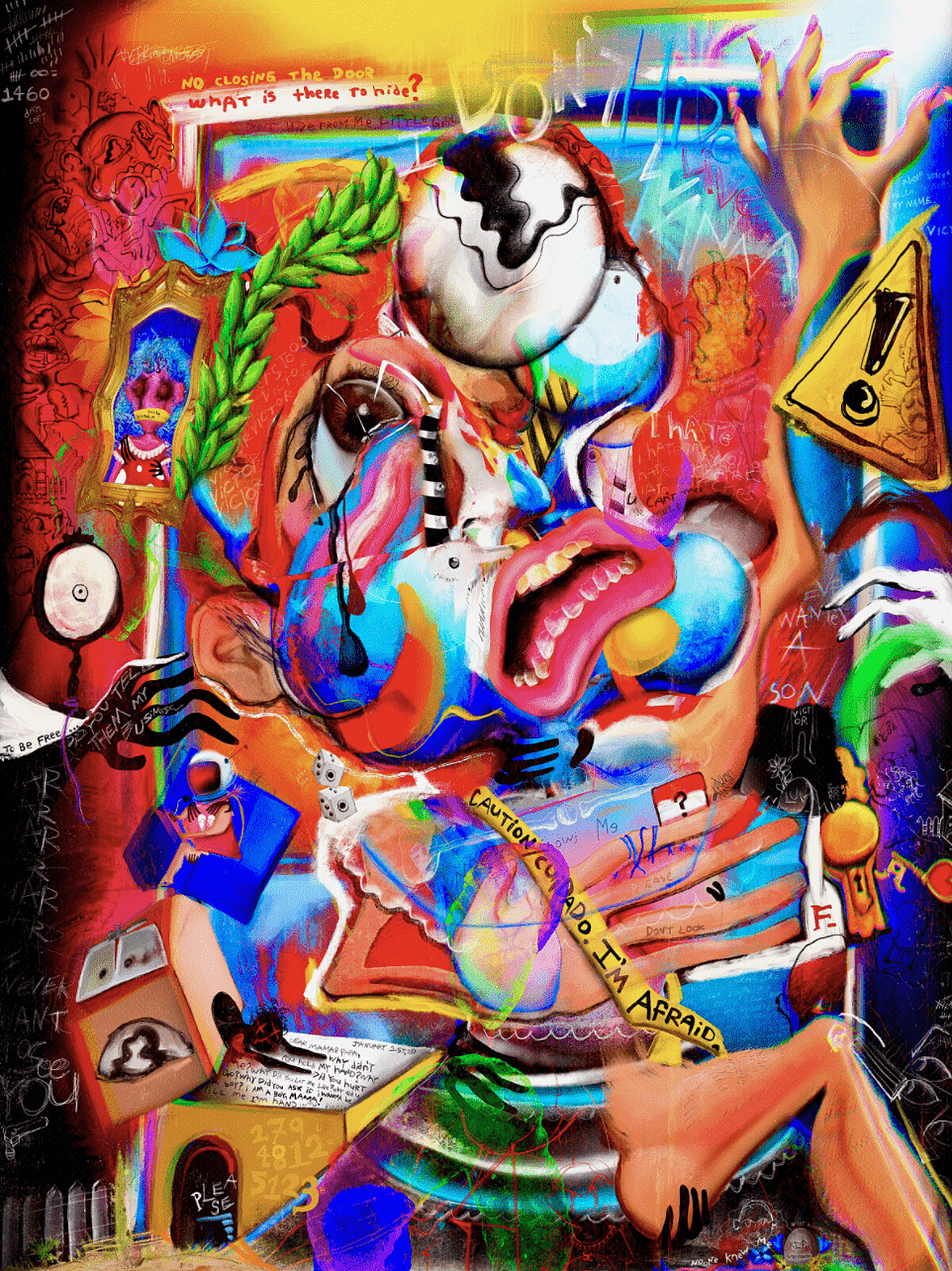 今年年僅19歲,以美國西雅圖為根據地的 FeWoCious,被人譽為當代巴斯奇亞,他以繽紛色調、塗鴉筆觸,畫出了自身性別掙扎與認同的動人故事。從13歲起開始創作的他,本名為 Victor Langlois,是當下最受矚目的藝術新星,他的身份是一位酷兒藝術家,在NFT市場找到了讓自己發光發熱的方式。他在2020年邁進NFT市場,作品《The Everlasting Beautiful》以55萬美元金額售出,不僅成為佳士得拍賣會史上最年輕的藝術家,也是第一個讓佳士得網站陷入停擺的人物。《Hello, i'm Victor (FEWOCiOUS) and This Is My Life.》正是那幅讓網站停止的作品,它記錄了 FeWoCious 痛苦的童年生活與性別轉變歷程,不僅打動無數藝術迷與藏家,也同時是 FeWoCious 獻給自我的成長禮物。