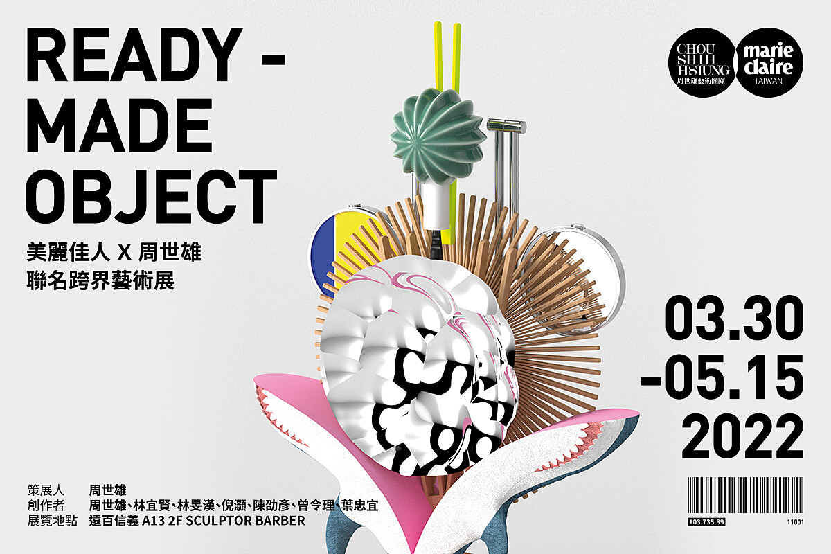 美麗佳人X周世雄 聯名跨界藝術展《Ready-Made Object》,以「Ready-made」為主題概念,邀請七位不同領域的創作者:服裝設計師 陳劭彥、建築設計師 曾令理、工業設計師 林宜賢、雕塑藝術家 倪灝、室內設計師 林旻漢、平面設計師 葉忠宜及當代藝術家 周世雄共同參與。