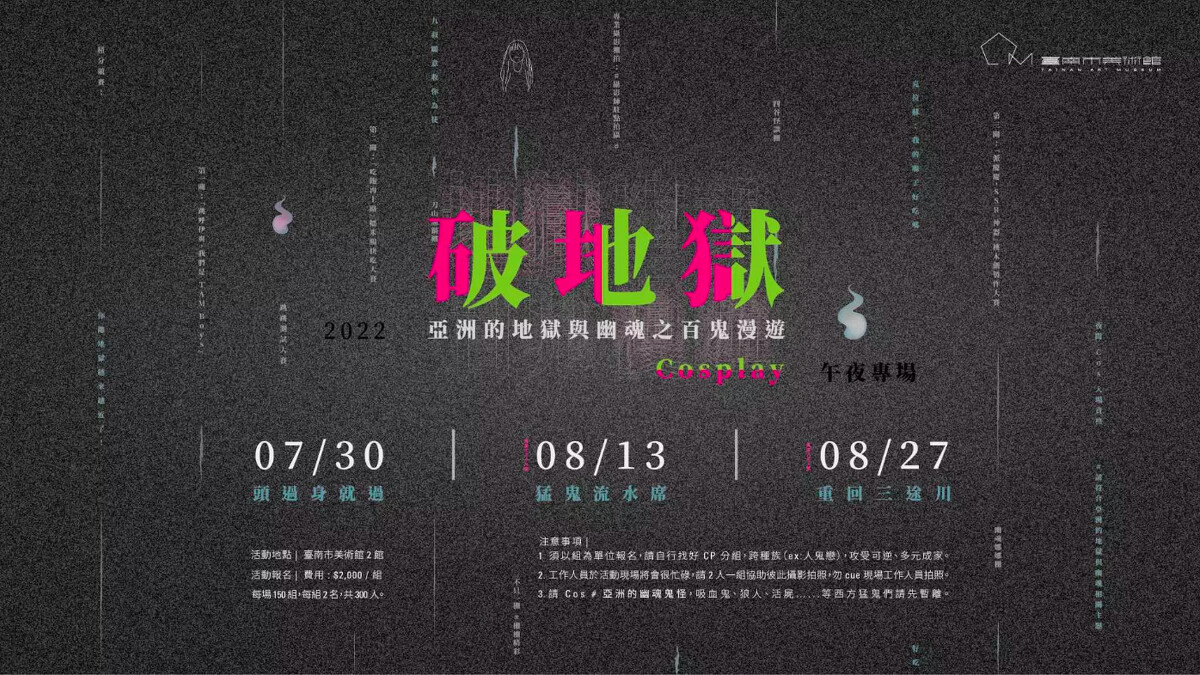 一開幕便吸引廣大排隊人潮試膽的臺南市美術館「亞洲的地獄與幽魂」,現在要如網友敲碗、開賣3場「破地獄 - 亞洲的地獄與幽魂之百鬼漫遊Cosplay午夜專場」,時間都在鬼月!