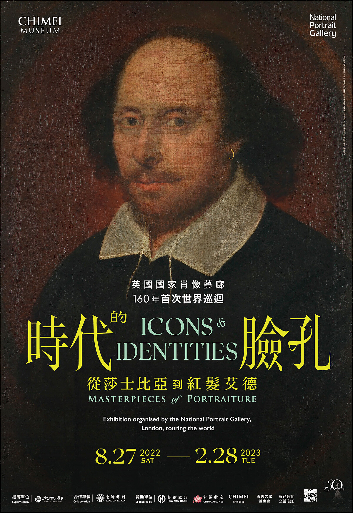 奇美博物館繼去年向英國V&A借展《蒂姆.沃克:美妙事物》 獲得熱烈迴響後,今年首度與英國國家肖像藝廊(National Portrait Gallery)合作,推出另一檔超級大展《時代的臉孔:從莎士比亞到紅髮艾德》(Icons & Identities: Masterpieces of Portraiture),也作為奇美博物館30週年之際為觀眾帶來的特別獻禮。