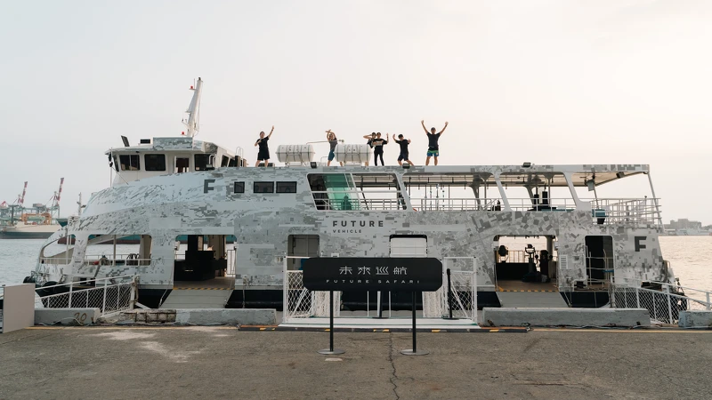 來到港都高雄,光是在陸上看展還不夠看,今年設計展更揪你登上由渡輪「旗福二號」 改裝成的「未來號」,在日目視覺藝術、彡苗空間實驗、文化銀行共同帶領下,開啟一場穿梭於高雄港的過去與未來之間的跨時空之旅!在此過程中,觀眾還可以看到萌感十足的「未來生物」探出頭來,與你一同享受這趟奇幻航程。